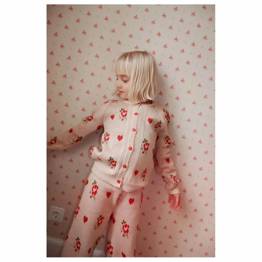 - Le pantalon Amelia est fabriqué en coton tricoté lourd. Il apporte confort et chaleur, avec un adorable motif de roses et de cœurs. Il est doté d’une ceinture élastique et d’un bord festonné à la base.