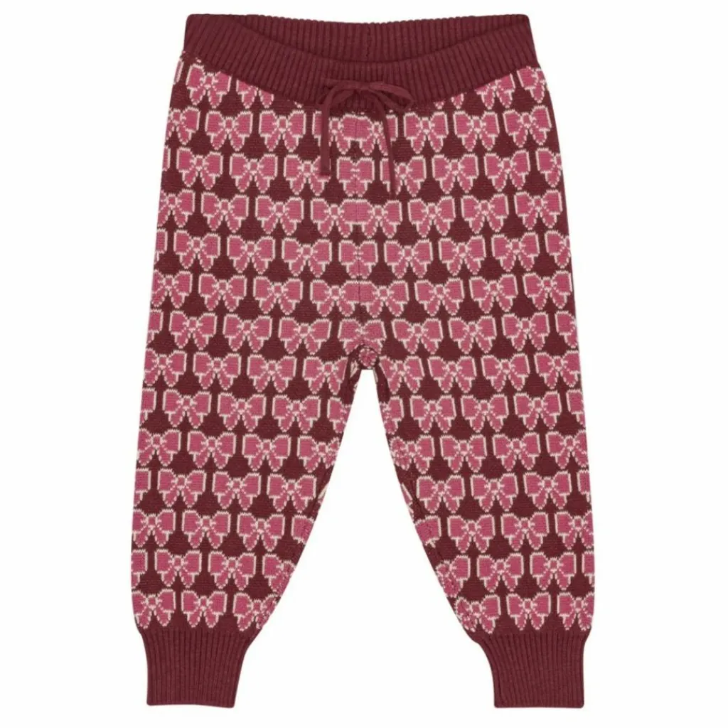 - Le pantalon Nova est fabriqué en coton tricoté lourd. Il offre confort et chaleur, avec un adorable motif de nœud. Il est doté d’une ceinture avec cordons de serrage et d’ourlets côtelés au bas des jambes.