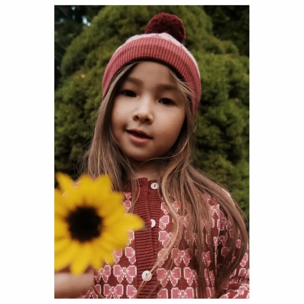 - Le cardigan Nova est fabriqué en coton tricoté épais. Il apporte confort et chaleur, avec un adorable motif de nœuds. Il est doté de manches régulières, d’un col rond et d’une fermeture à boutons sur le devant.