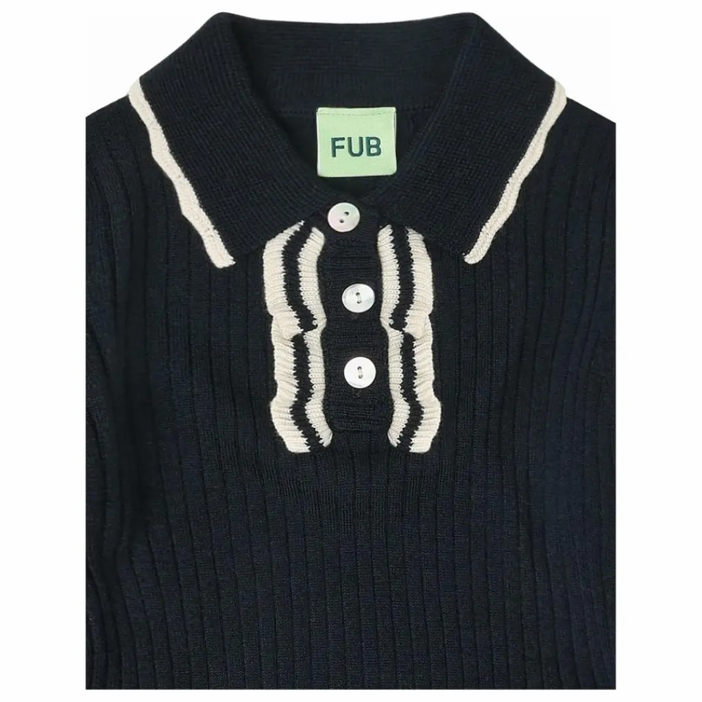- Ce polo à manches longues est fabriqué en laine mérinos extra-fine et présente une coupe droite. Il est tricoté selon une structure en côtes classique et présente un col à bord contrasté, des détails volantés le long de la patte de boutonnage et des ourlets de manches volantés. La patte de boutonnage est terminée par des boutons en nacre. La laine mérinos est certifiée BLUESIGN® et RWS, exempte de produits chimiques nocifs, et provient de moutons non mulets.