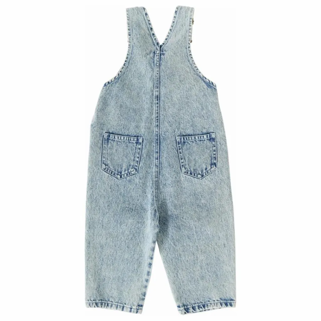 - Vintage Washed Light Denim Poches latérales généreuses Grandes poches arrière carrées fonctionnelles Bretelles réglables avec fermoirs métalliques Boutons-pression sur les jambes (jusqu’à 2 ans) pour faciliter le changement de couche Conçu en Australie