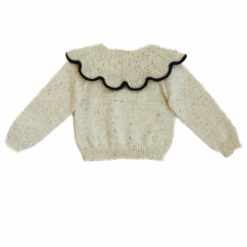 - Daisy est un ravissant pull-over tricoté à la main, doté d’un doux col festonné, qui ajoute un détail doux et intemporel à un modèle classique. Fabriqué avec amour en 100 % laine mérinos – parfaite pour la peau sensible des enfants – ce pull offre à la fois confort et style pour la vie de tous les jours ou les grandes occasions. Bouton en bois au dos.