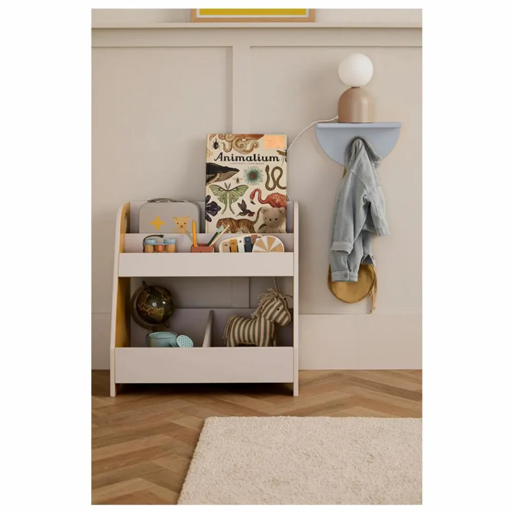- L’étagère de rangement grise et moutarde de Kid’s Concept est conçue pour les enfants âgés de 2 à 6 ans. Cette étagère conviviale permet d’atteindre facilement leurs histoires préférées au coucher et leurs peluches mignonnes. La section du bas est idéale pour ranger des jouets en peluche, des blocs de construction et d’autres jouets, tandis que le haut est un endroit agréable pour afficher les livres.