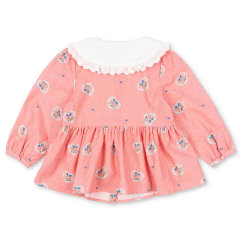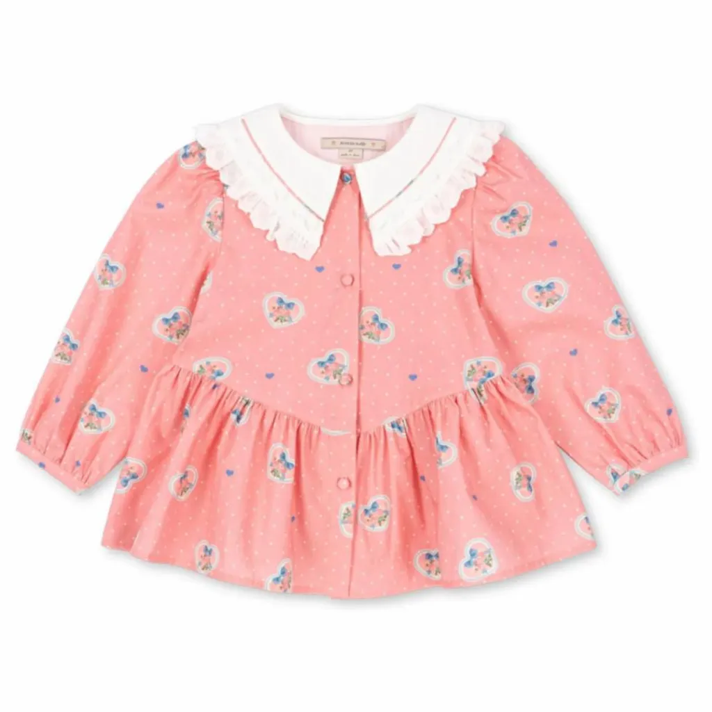 - Chemisier à col rond classique, jupe péplum et manches bouffantes. Boutons recouverts de tissu sur le devant et fronces aux poignets.