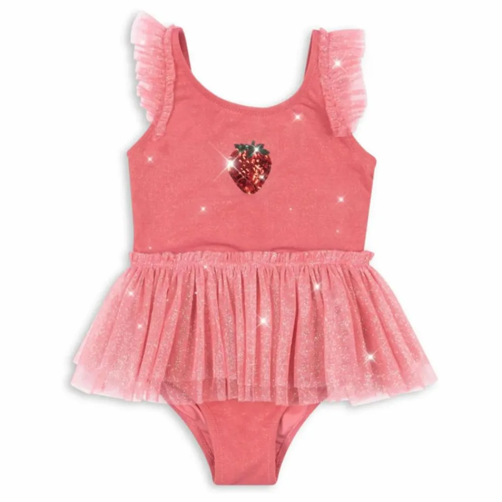 - Maillot de bain conçu avec des volants de tulle pailleté et un appliqué de paillettes. Matières : Principale : 82% nylon, 10% lurex, 8% élasthanne. Doublure : 92% polyester recyclé, 8% élasthanne.