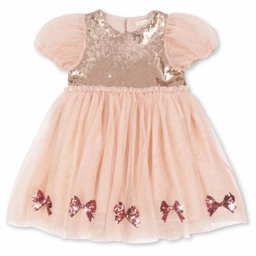 - Robe à manches bouffantes avec un corsage à paillettes étincelantes et une jupe en tulle superposé. Un favori festif qui convient à toutes les occasions. Conçue avec une fermeture à boutons dans le dos. 100% polyester avec une doublure 100% coton.
