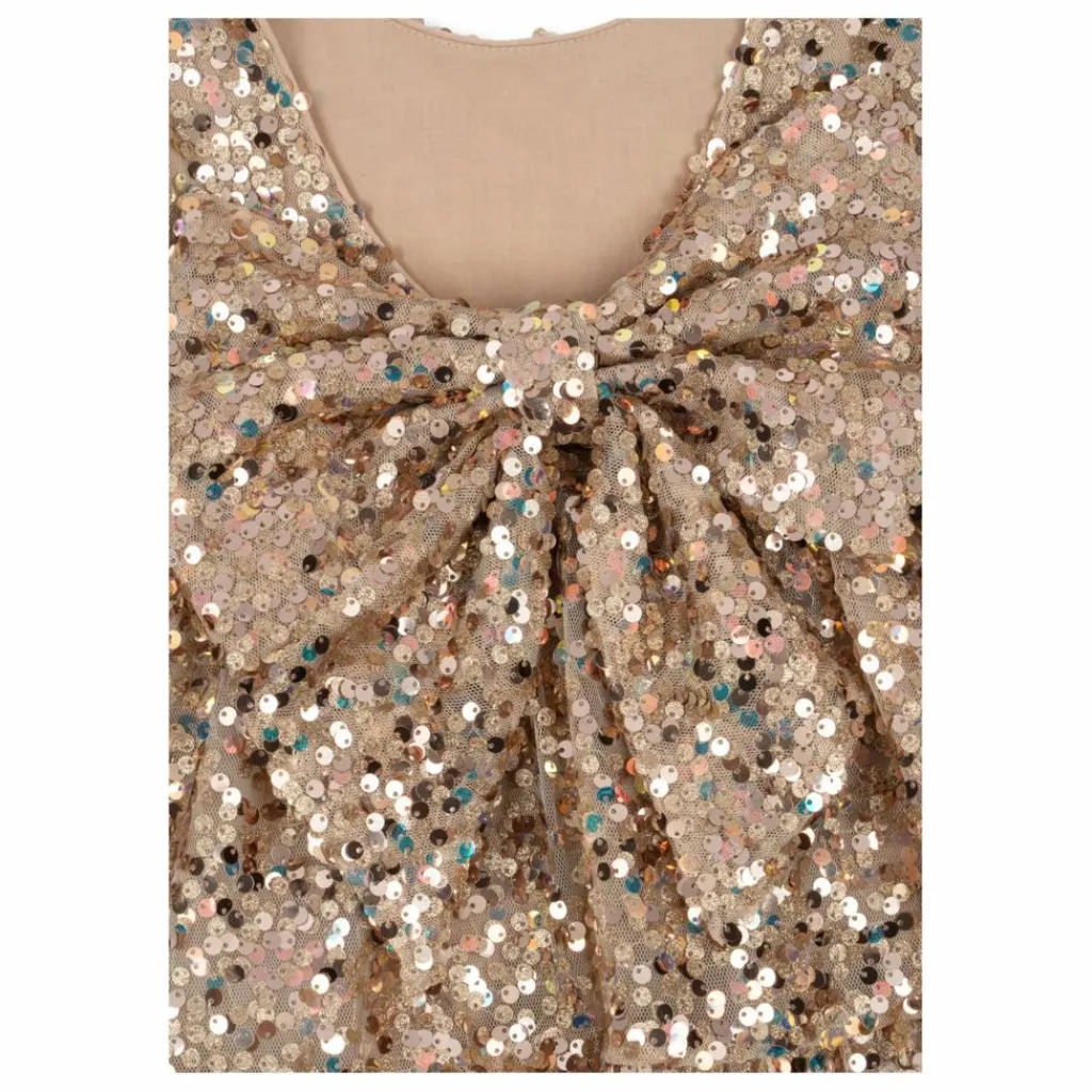 - La robe Lila est recouverte de paillettes étincelantes et présente des manches ballon décoratives et une jupe évasée avec une doublure en coton doux. 100% polyester avec une doublure en 100% coton.