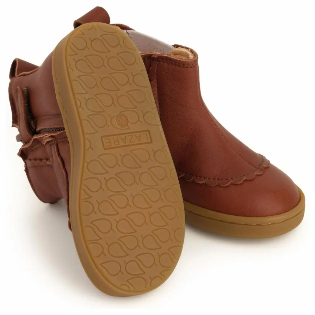 - Les chaussures premiers pas Isaure sont conçues pour accompagner les enfants ayant acquis la marche autonome. Inspirées de la Chelsea boot, elles combinent élégance et praticité avec un élastique latéral et une fermeture zippée intérieure, facilitant l’enfilage et favorisant l’autonomie. Fabriquées en cuir sans chrome et sans métal, elles offrent souplesse et confort grâce à une semelle en caoutchouc sans voûte plantaire et une construction cousue Strobel, respectant le développement naturel du pied.