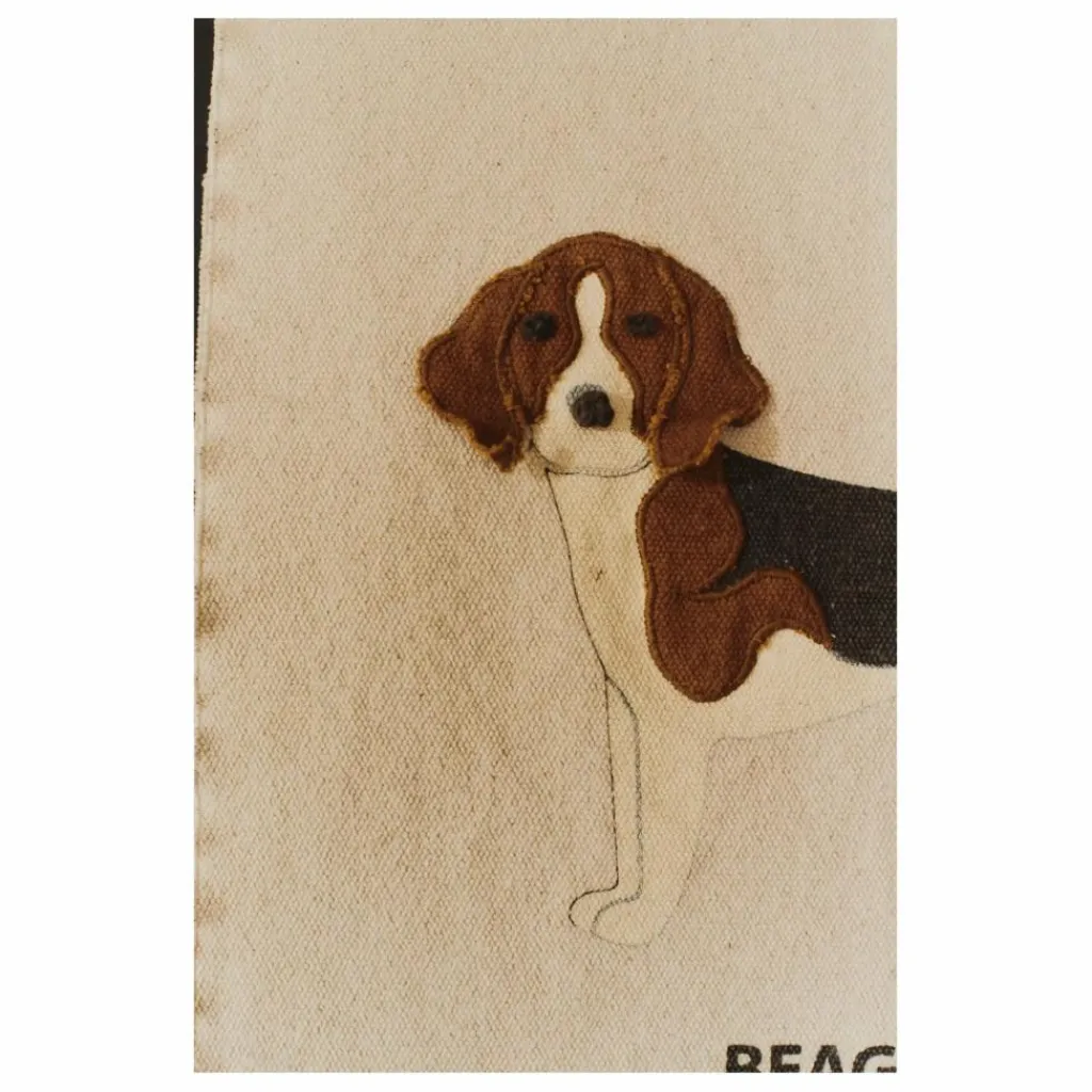 - Pour les amoureux des petits chiens ! Cette suspension murale en coton présente les silhouettes de six races de chiens, chacune réalisée selon des techniques artisanales différentes qui ajoutent texture, dimension et détails interactifs. Sous chaque silhouette, le nom de la race est imprimé, ce qui en fait un objet décoratif et éducatif. Sérigraphie multicolore, applications sur toile, cordons et franges… tout cela lui confère un charme unique et tactile. Deux trous métalliques dans les coins supérieurs permettent une suspension murale facile.
