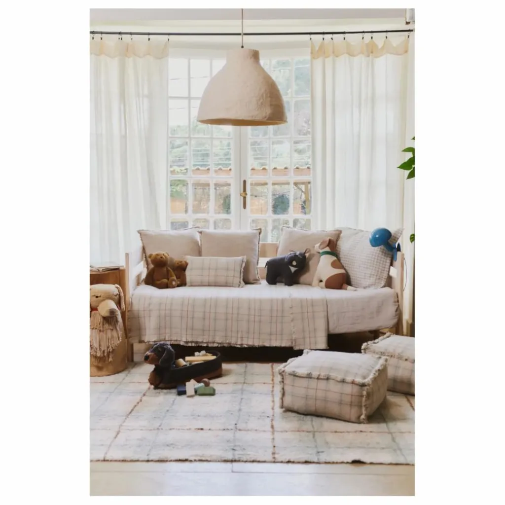 - Un pouf écossais douillet, parfait pour les petits rêveurs ! Tissé à la main sur des métiers à tisser traditionnels, ce pouf arbore un motif écossais classique dans des tons chauds de bleu sauge, bleu vintage et ocre. Ses franges douces ajoutent une touche ludique et une texture supplémentaire. L’endroit idéal pour s’asseoir, jouer et égayer l’espace de votre enfant.