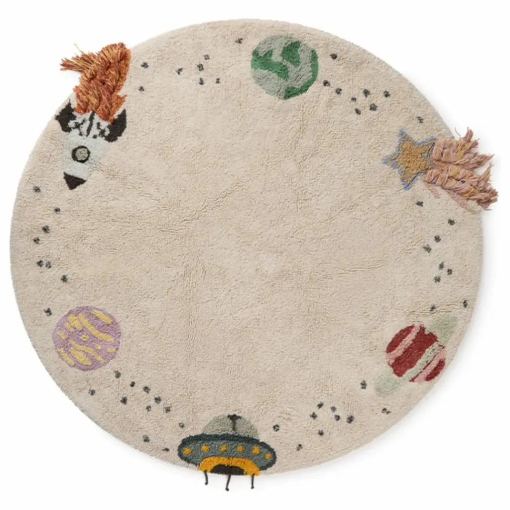 - Transformez la chambre de votre enfant en une aventure spatiale avec ce tapis en toile naturelle interstellaire. Doté de charmants motifs autour de la bordure de trois planètes, d’une fusée, d’une étoile filante et d’un OVNI, ce tapis est parfait pour les jeunes explorateurs et les astronautes en herbe.