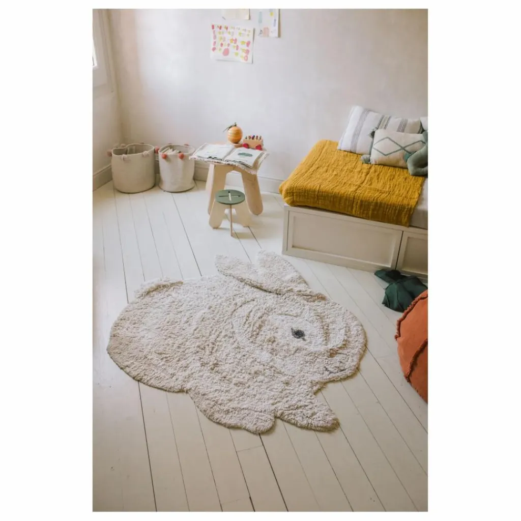 - Découvrez le charme ludique de notre tapis animal lapin. Fabriqué à la main avec soin dans des couleurs naturelles et ivoire, en mélangeant différentes hauteurs de poils pour lui donner un aspect et un toucher veloutés.