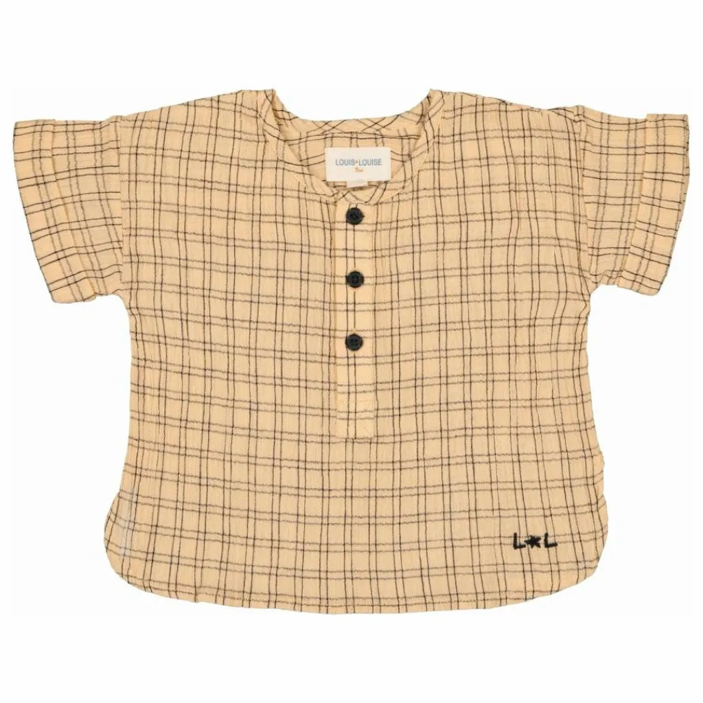 - Détails : Fermé par 4 boutons, fendu sur les cotés, broderie Louis Louise ton sur ton en bas.
