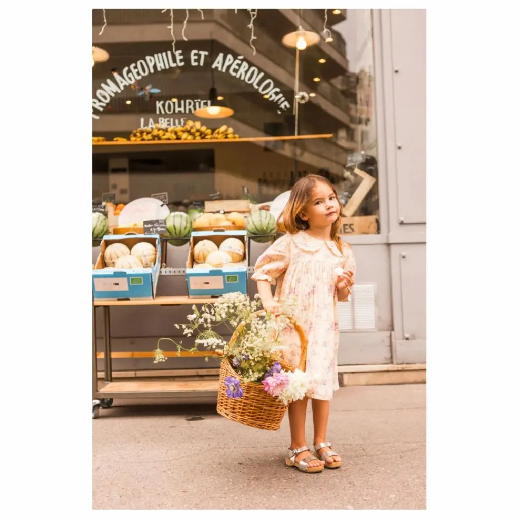 - Détails : Col claudine broderie anglaise, manches ballons élastiquées, patte de boutonnage dans le dos.
