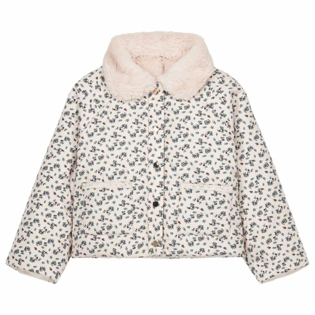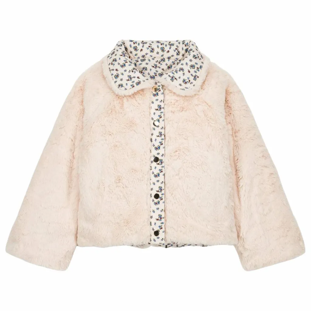 Réversible : un côté en batiste de coton fleuri et l’autre en fausse fourrure très douce.
