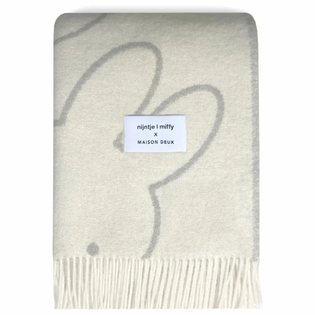 La Couverture Miffy Blanc Gris est un tissu jacquard composé à 100% de laine de Nouvelle-Zélande, avec des franges sur les côtés courts. Cette couverture épaisse est réversible sur le côté opposé. Le motif réversible vous permet d’alterner entre deux ambiances différentes. Avec ses dimensions de 130 x 200 cm, elle est assez grande pour permettre à quelqu’un de se joindre à vous. Elle vous garde au chaud et modernise votre salon en une fraction de seconde.