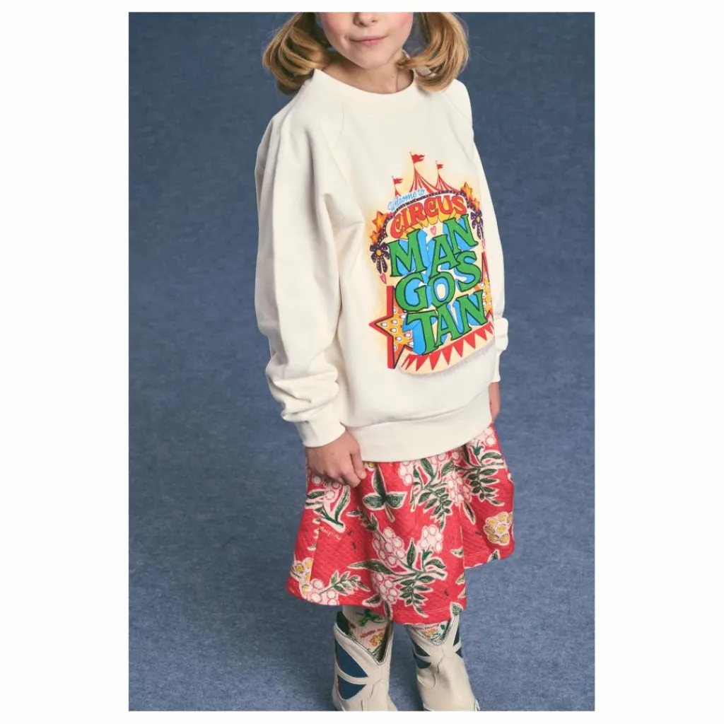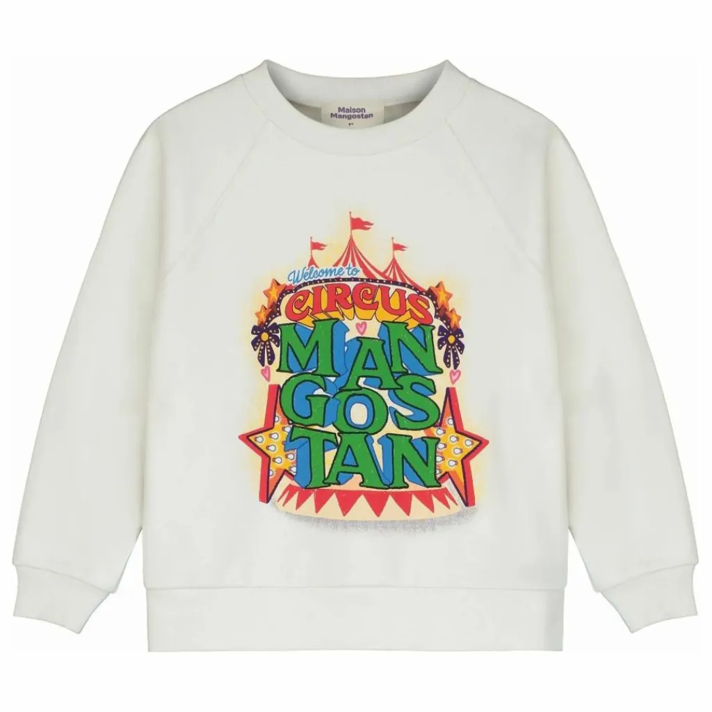 - Le sweat Circus en blanc nuageux, avec une coupe décontractée, présente un imprimé de placement coloré, des manches longues et un col rond. Composition : 100 % coton biologique Cet article est de taille normale, nous vous suggérons de choisir votre taille habituelle.