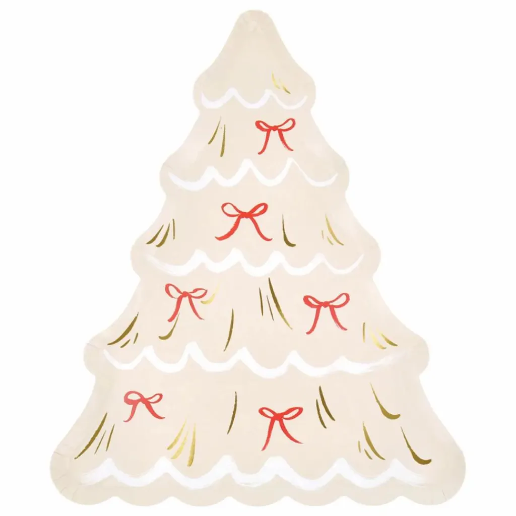 - Fa, la, la ! Ces assiettes en papier en forme de sapin de Noël vous mettront instantanément dans l’ambiance festive. Leur design traditionnel revisité avec des nœuds chics et des reflets dorés apportera couleur et élégance à votre table. Parfaites pour les repas en famille ou les cocktails. Associez-les à une vaisselle assortie pour une décoration de fête sans effort.