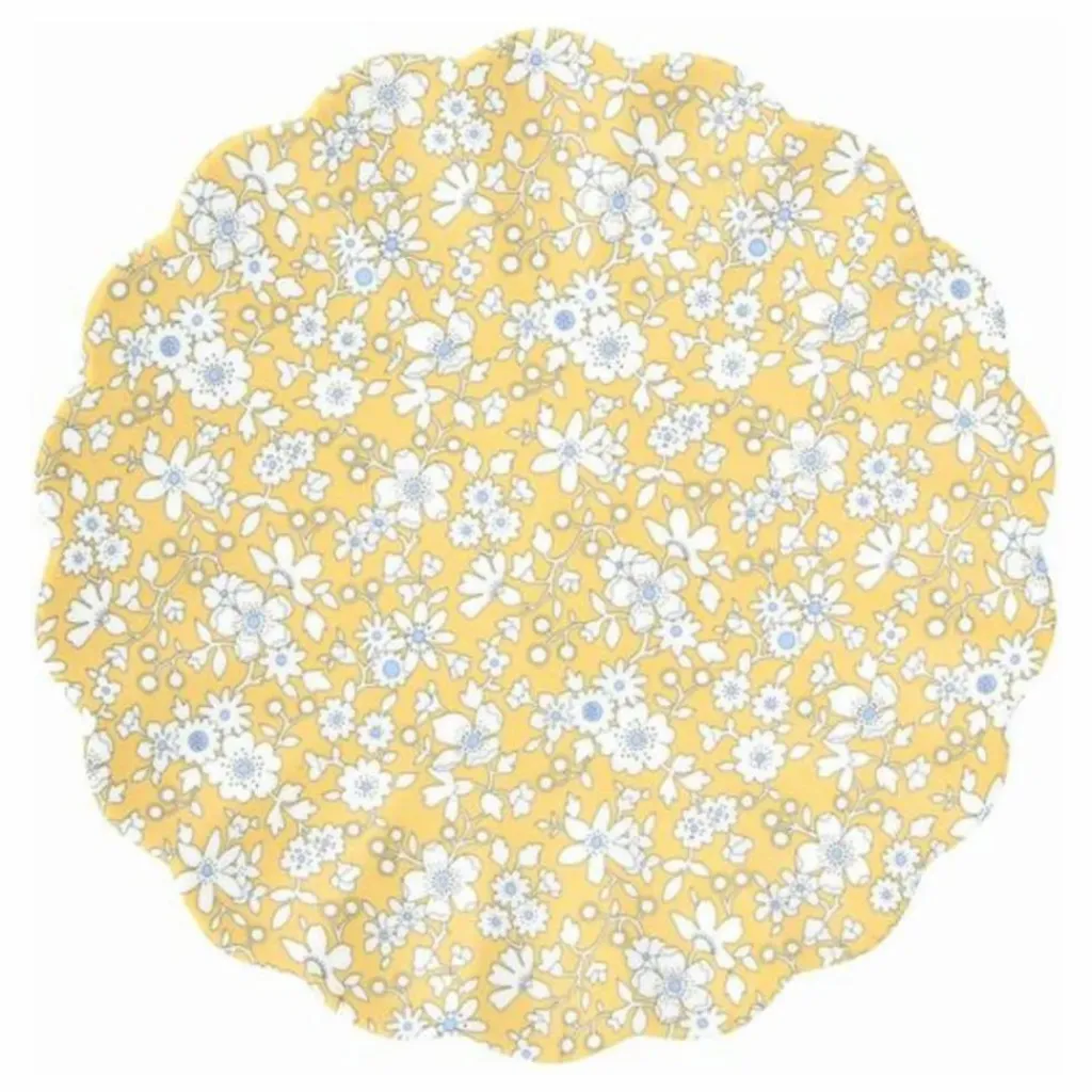 - Assiettes en mélamine (composées de 70 % de mélamine et 30 % de cellulose) avec impression par transfert et forme de pétoncle moulée. Chacune des assiettes a un motif imprimé Liberty différent, avec des couleurs qui conviendront à toutes les célébrations.. Les assiettes sont enveloppées dans du papier de soie blanc avant d’être emballées