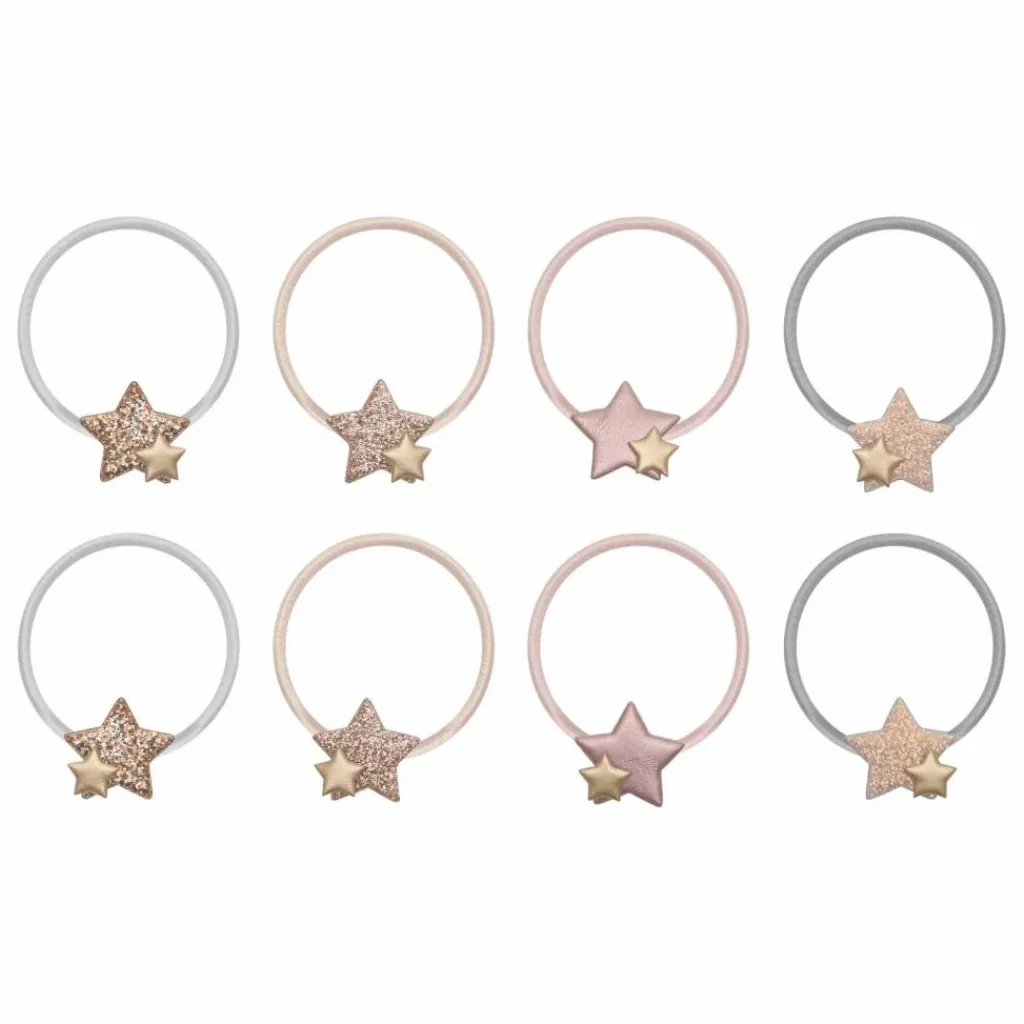 - – 8 par paquet – Etoiles fabriquées à partir d’un mélange magique de tissus métalliques et pailletés – Elastiques de 5 cm de diamètre, extensibles et résistants, dans une palette de tons neutres