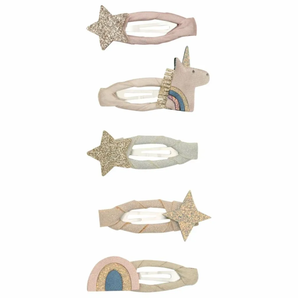- Ajoutez un peu de magie mythique à leurs cheveux avec nos mini clic clacs licorne Celeste ! Une super licorne, un arc-en-ciel et des étoiles sont réunis dans la plus jolie palette de pastels pour un look qu’elles adoreront !