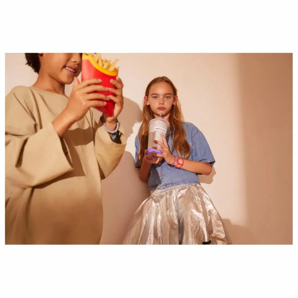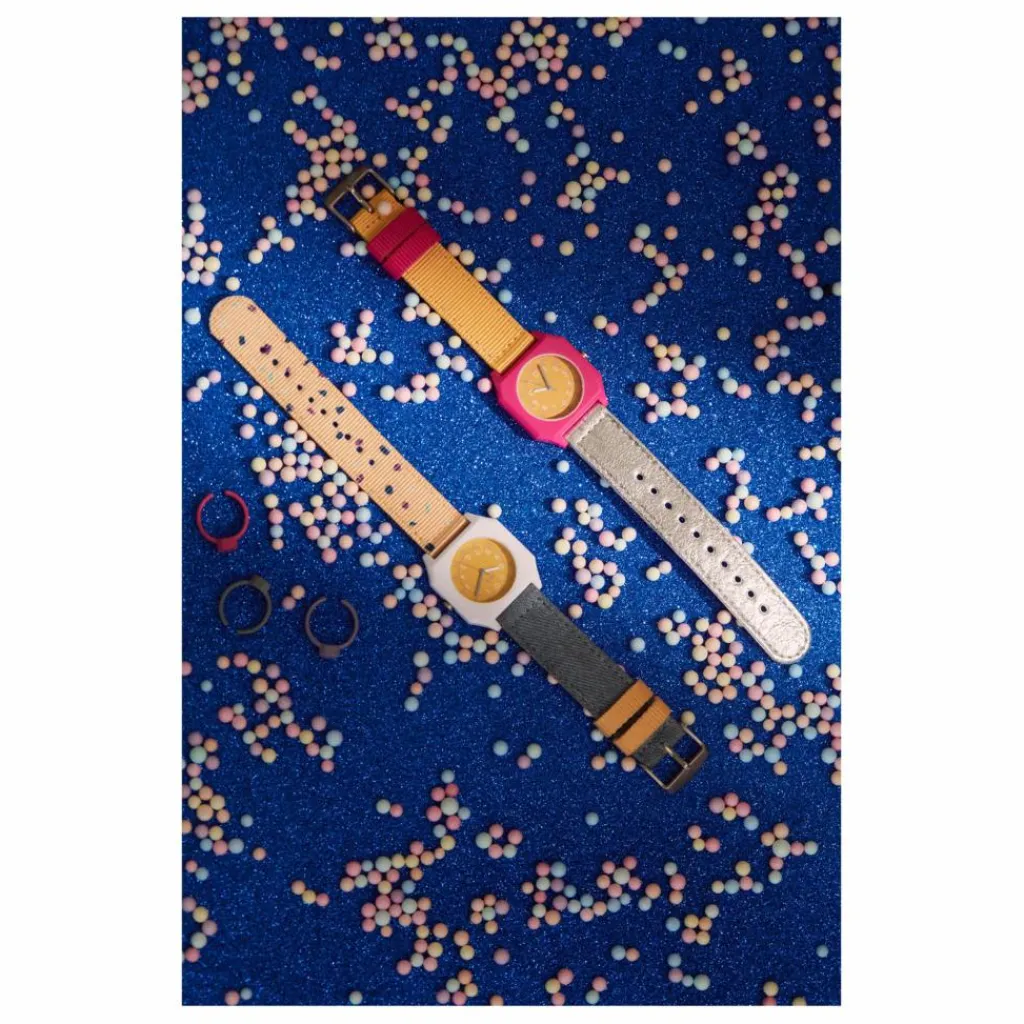 - Verres : 100% Cristal, Toile : 50% Nylon recyclé, Polyuréthane recyclé : 50%, Boucle : 100% Acier