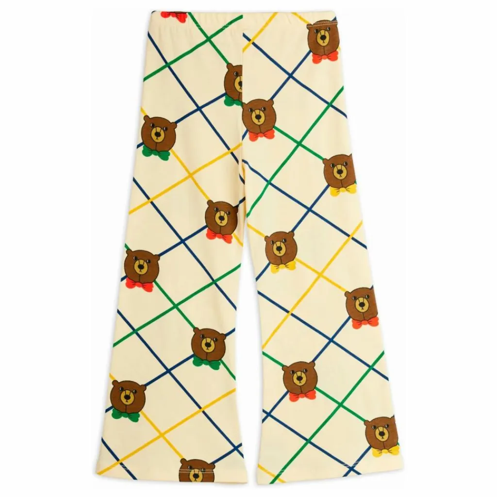 - Flared trousers with an all-over bear check pattern