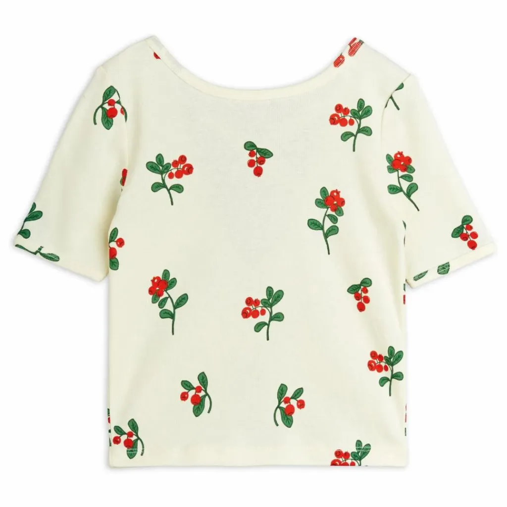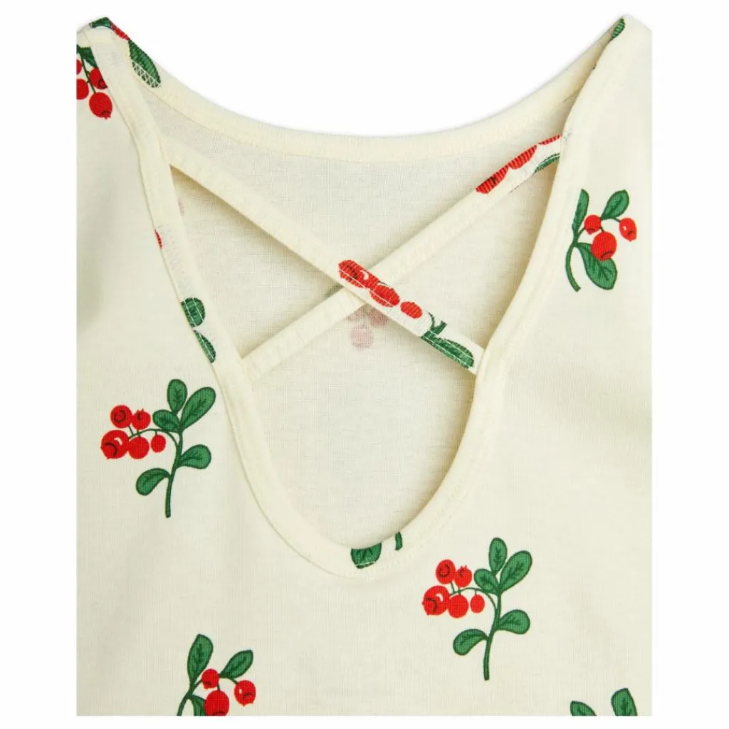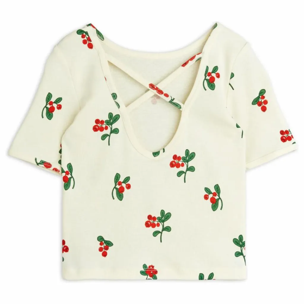 - T-shirt de danse moulant avec un imprimé intégral de mûres, fabriqué en coton 100 % biologique certifié GOTS. Conçu avec un dos nu et des bretelles croisées, ainsi que des liserés au niveau du cou et des manches.