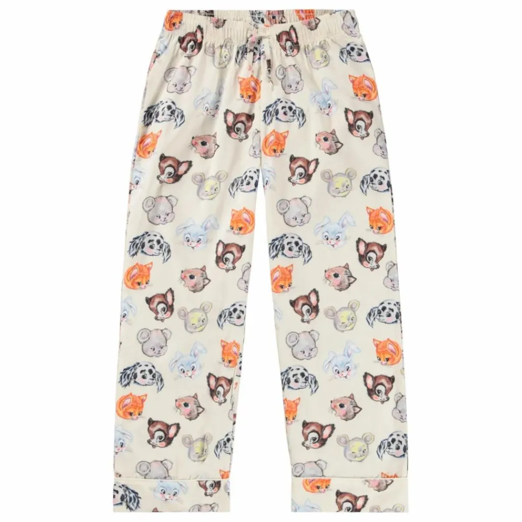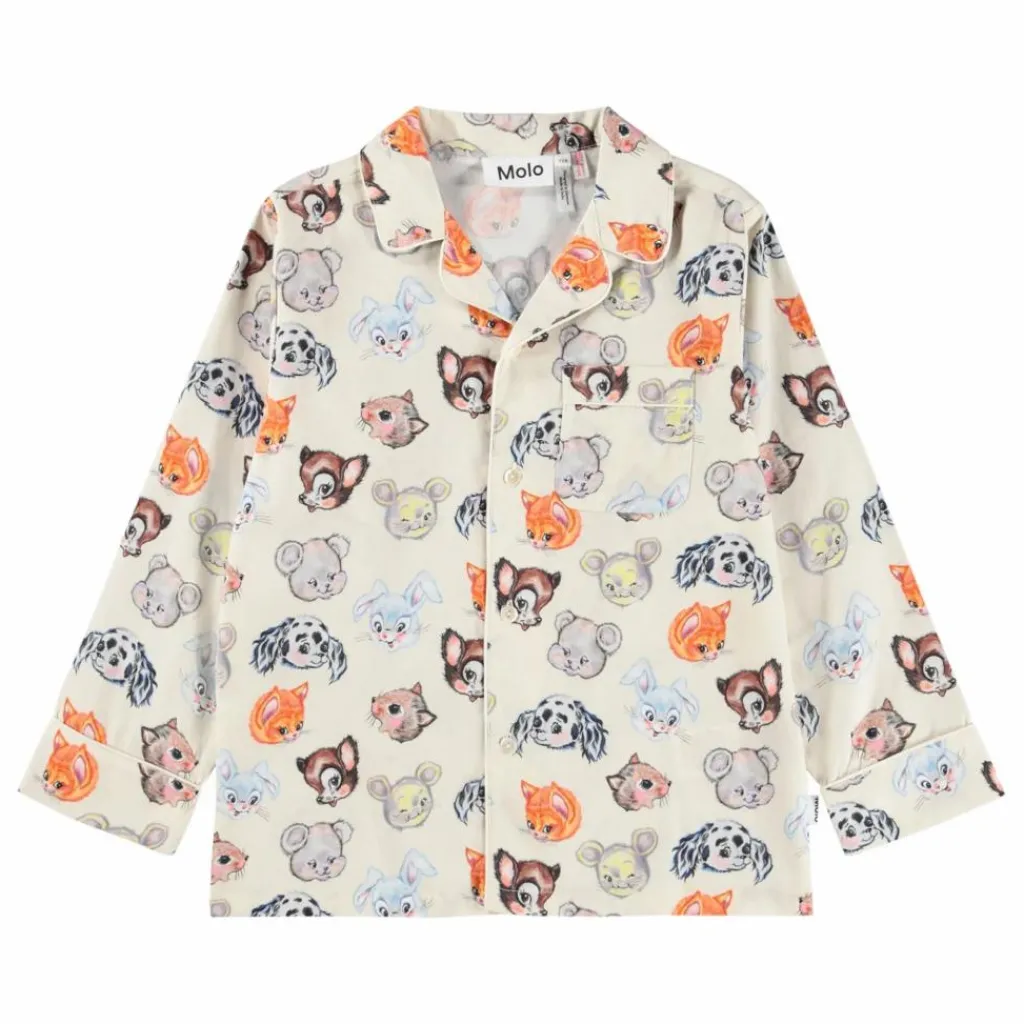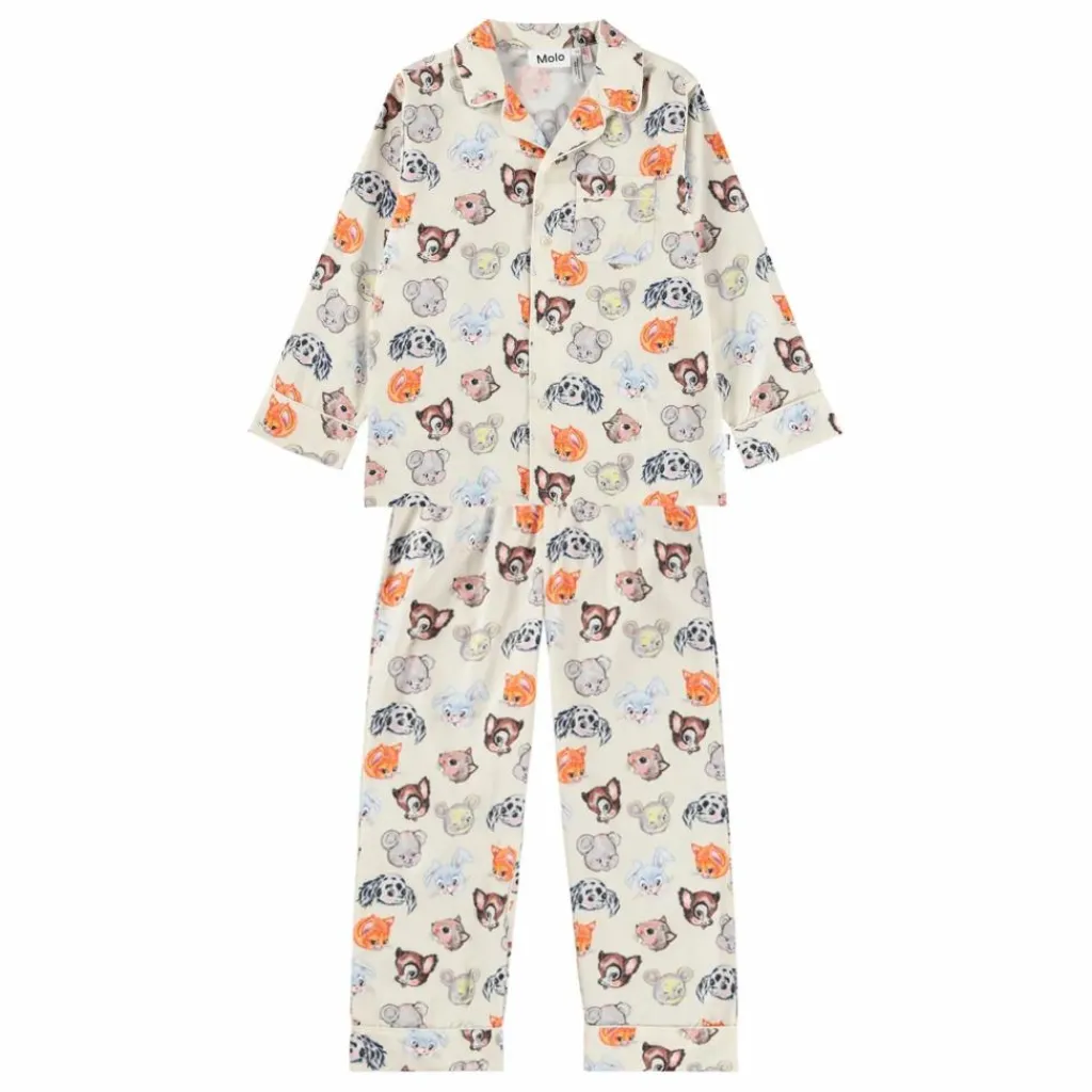 - Cet ensemble pyjama blanc cassé en coton biologique de Molo se compose d’un pantalon à jambes longues et d’une taille élastique avec cordon de serrage. Le haut a des manches longues, un col, une poche sur la poitrine et des boutons sur le devant. L’ensemble a une coupe régulière et un imprimé coloré d’animaux mignons dessinés.