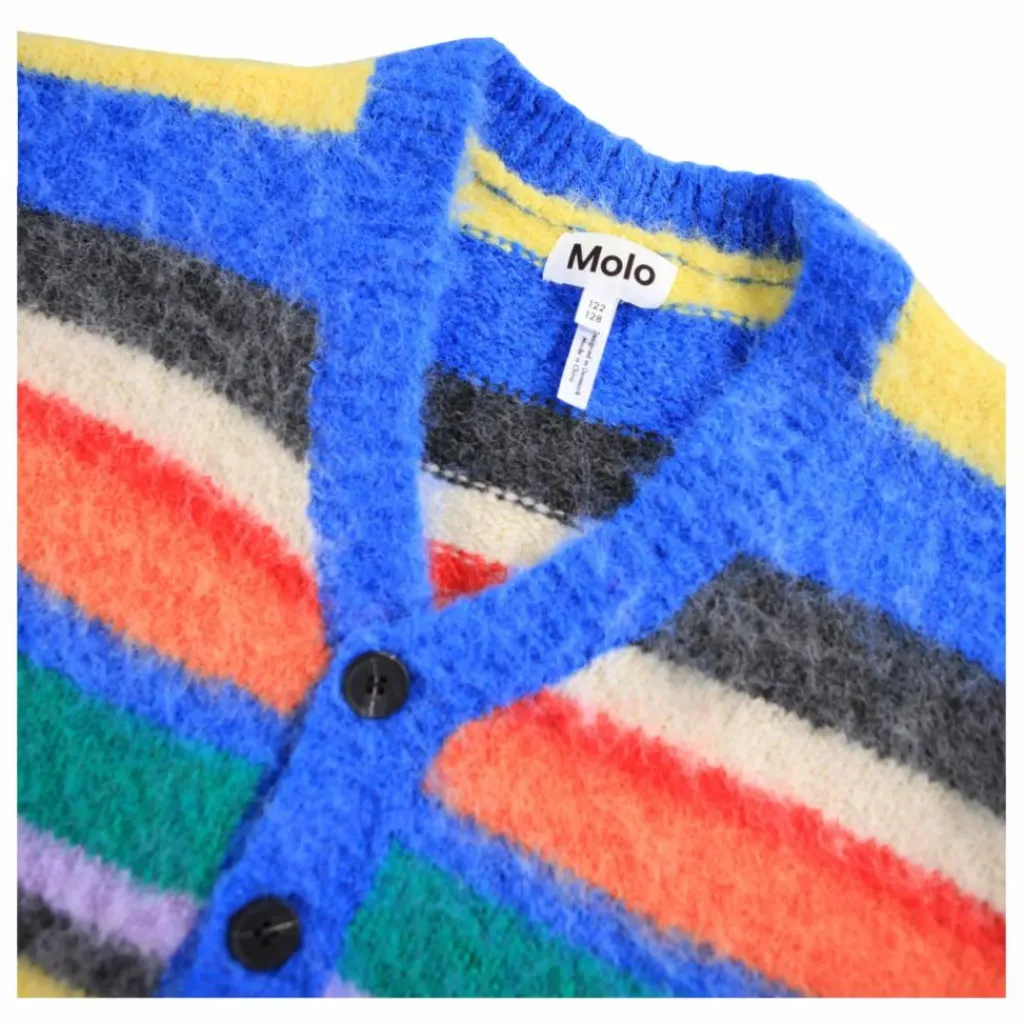 - Ce cardigan rayé multicolore et moelleux de Molo est réalisé en laine d’alpaga. Il présente une coupe oversize, une encolure en V et des bords côtelés au niveau du cou, des manches et de la taille.