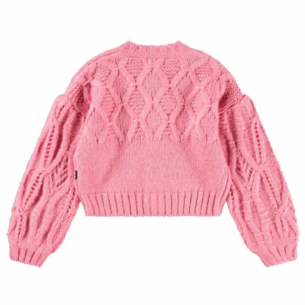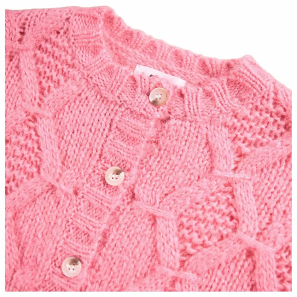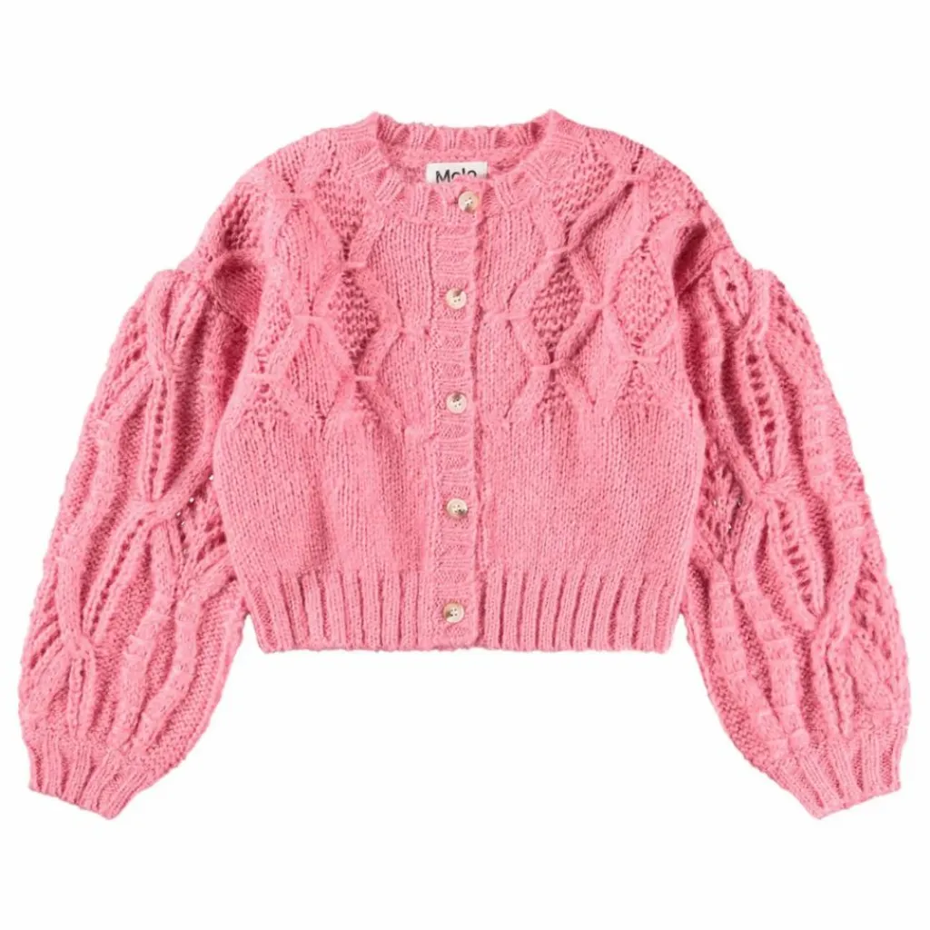 - Ce cardigan rose épais de Molo est confectionné dans un doux mélange de laine d’alpaga. Il présente un joli motif tissé, des manches ballon volumineuses et des boutons délicats sur le devant. Les bords côtelés autour du cou, des manches et de la taille assurent une coupe confortable.