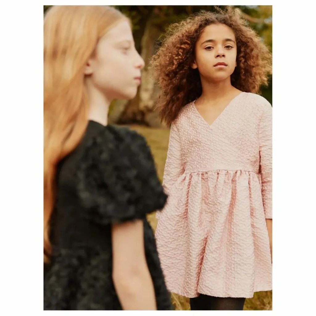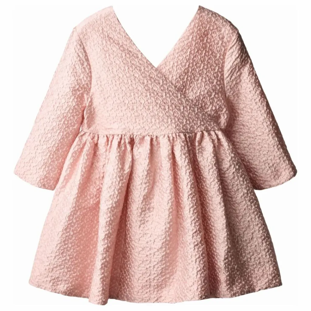 - Cette robe rose de Molo présente une jupe volumineuse et des manches trois-quarts. Elle présente un décolleté en V enveloppant sur le devant et dans le dos, orné d’un gros nœud décoratif. Confectionnée dans un jacquard à motifs floraux, elle donne une allure ample et élégante.