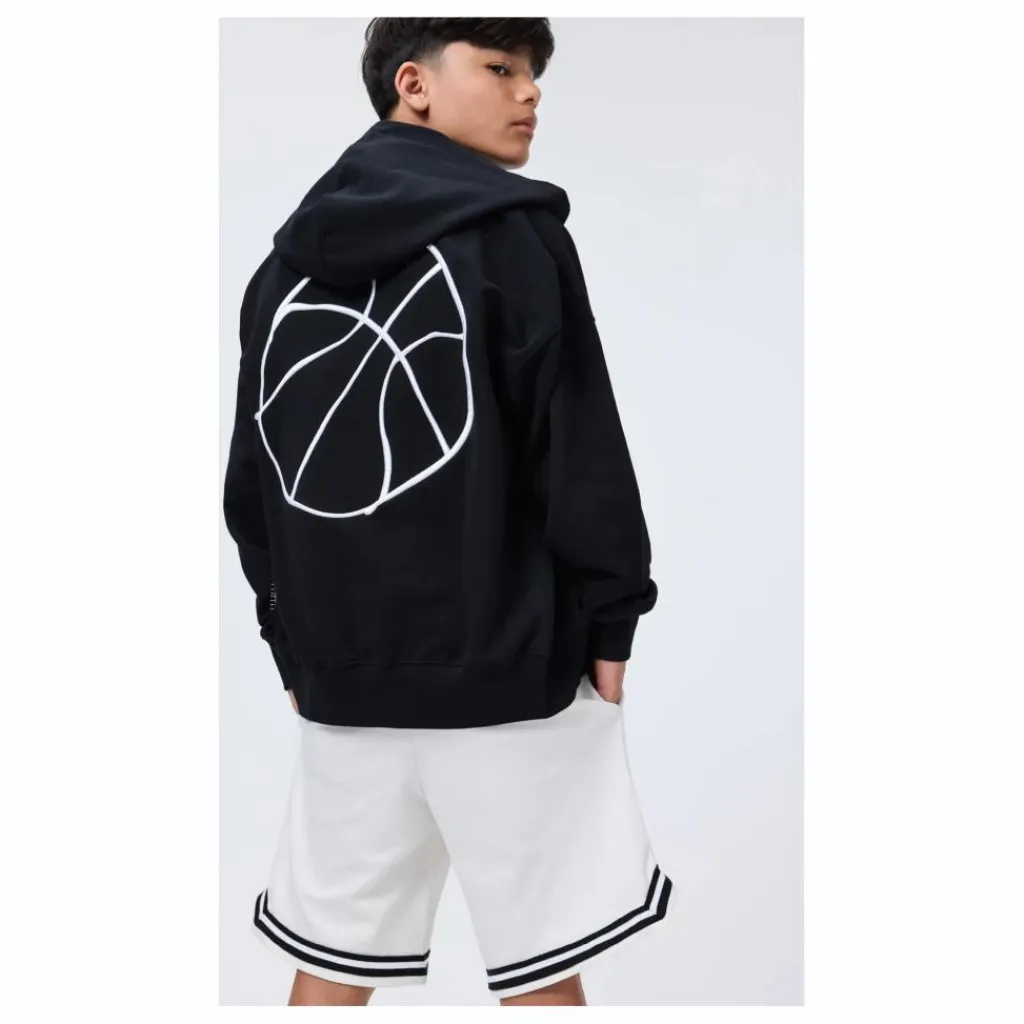 - Ce sweat à capuche en coton doux est doté d’une fermeture à glissière sur le devant et d’une poche kangourou spacieuse pour plus de fonctionnalité. Sa coupe décontractée assure le confort, ce qui le rend parfait pour le jeu ou les sorties décontractées. Les poignets et l’ourlet côtelés assurent une finition confortable, tandis que le ballon de basket brodé ajoute une touche ludique, ce qui en fait un must-have pour les jeunes amateurs de sport.