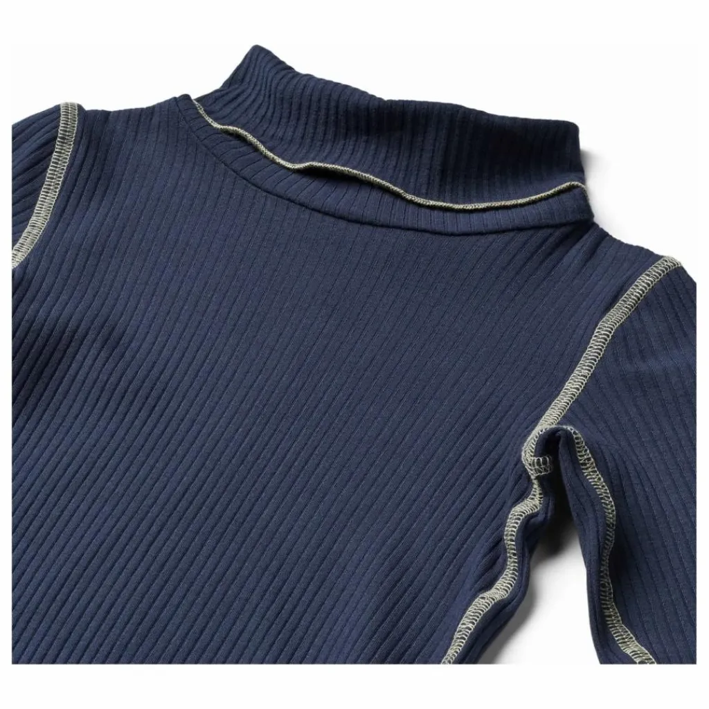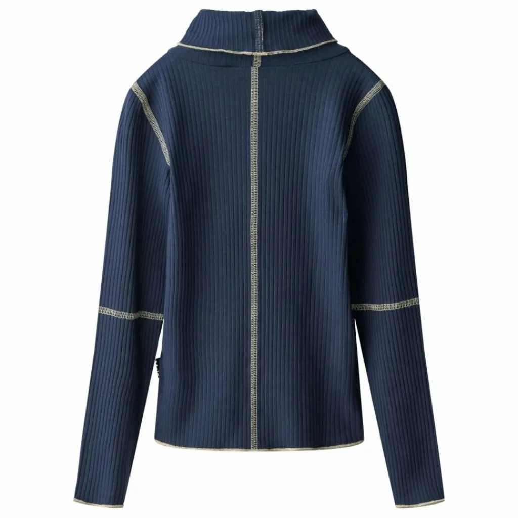- Cette blouse bleu foncé de Molo est confectionnée en côte de coton viscose extensible et douce et présente une coupe près du corps. Elle présente un col roulé, des bords bruts et des coutures blanc cassé visibles.