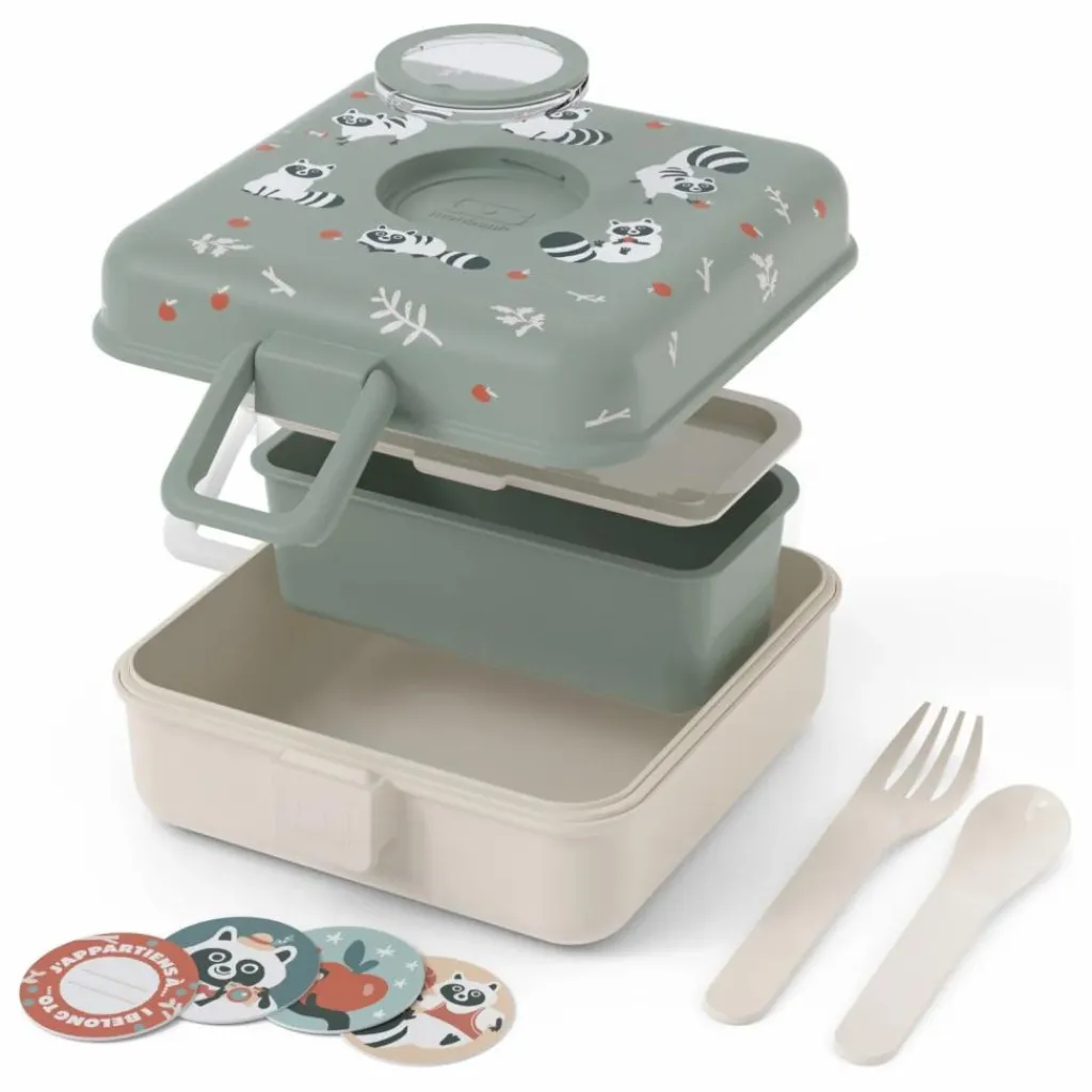 Avec la lunch box Snacky, ce n’est pas un estomac qui gargouille qui arrêtera les enfants dans leurs folles aventures ! Son format généreux et plat de 850 ml permet de transporter et protéger un sandwich, une brique de jus de fruits, une gourde de compote, des cookies ou tout autre encas préféré des minis aventuriers. Une fourchette et une cuillère sont disponibles sous le couvercle de cette boite à goûter pour permettre aux enfants de profiter pleinement de leur repas. Une caissette amovible avec couvercle est également incluse pour faciliter l’organisation des différents aliments. En plus d’être facile à ouvrir et fermer pour les enfants, cette boite à sandwich peut être personnalisée grâce aux 4 vignettes incluses, interchangeables sur le couvercle de la boite. Dites au revoir aux sandwiches en miettes au fond du cartable !
