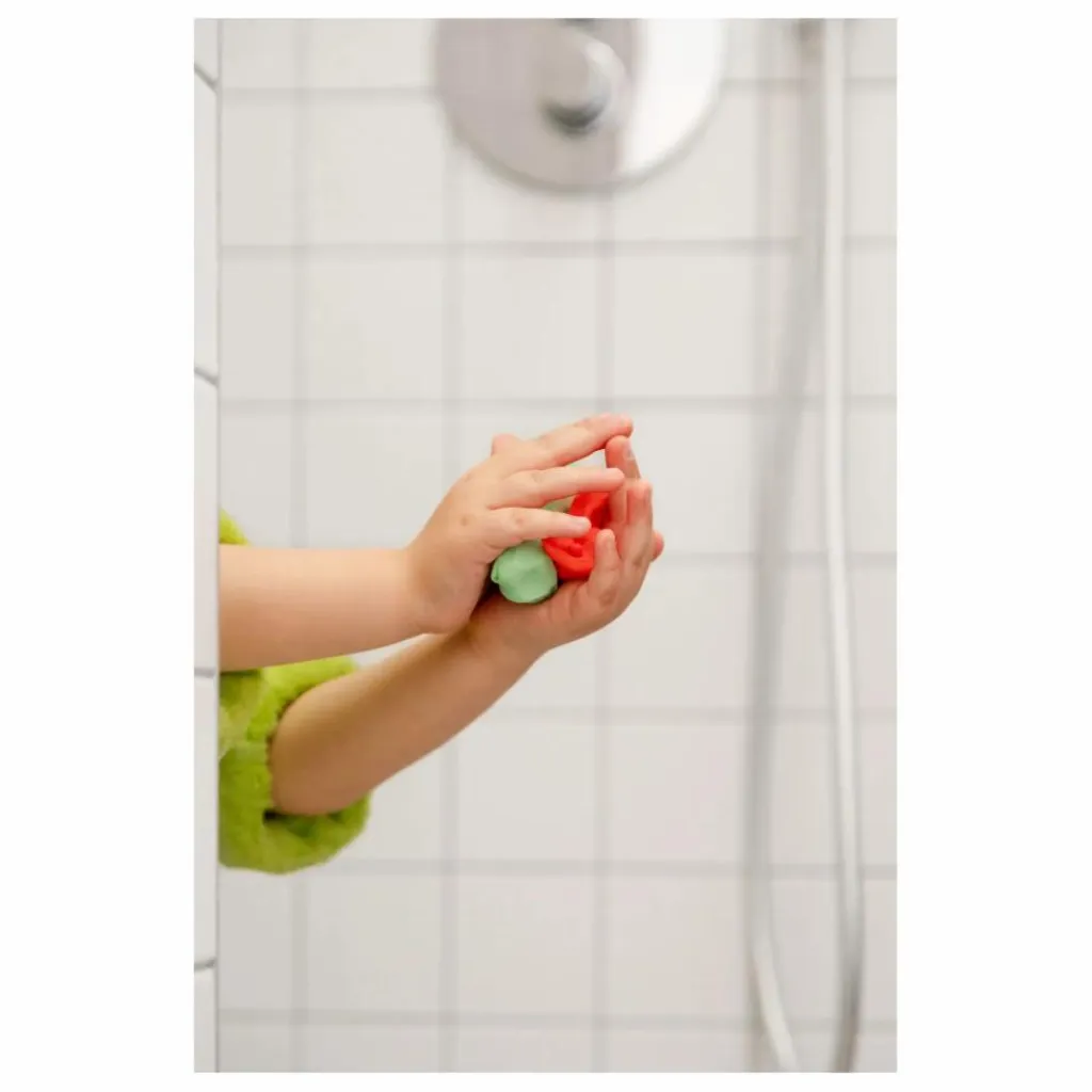 Pour se laver : Utilisez la pâte à modeler comme un savon. Prenez une petite quantité, façonnez-la dans la main de votre enfant, ajoutez de l’eau pour faire mousser, puis lavez délicatement la peau.