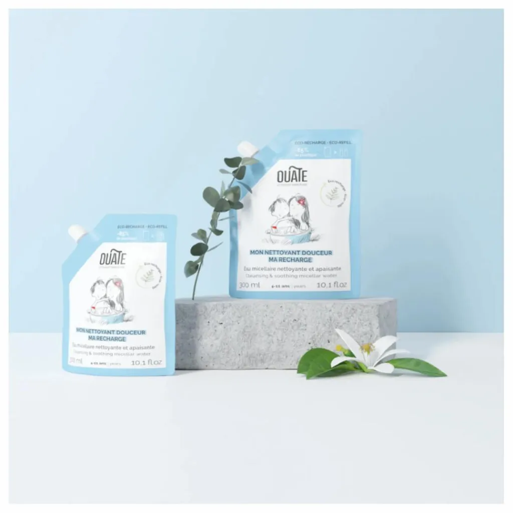 Cette recharge est l’équivalent de 2 flacons « Mon nettoyant douceur ». Conçue en monomatière, elle est recyclable et contient 85% de plastique en moins que 2 flacons de Mon nettoyant douceur 150 ml.