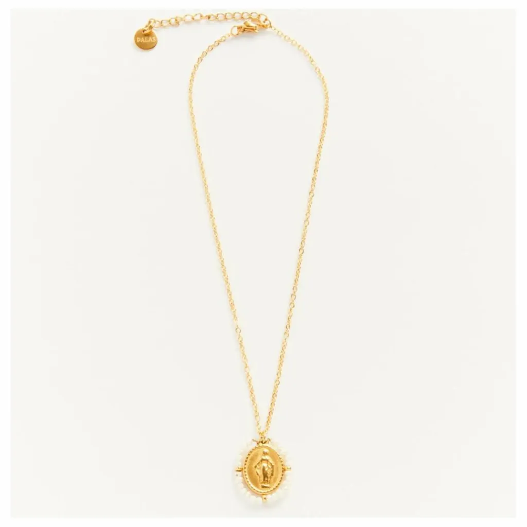- Collier en acier inoxidable doré et perle semi présieuse
