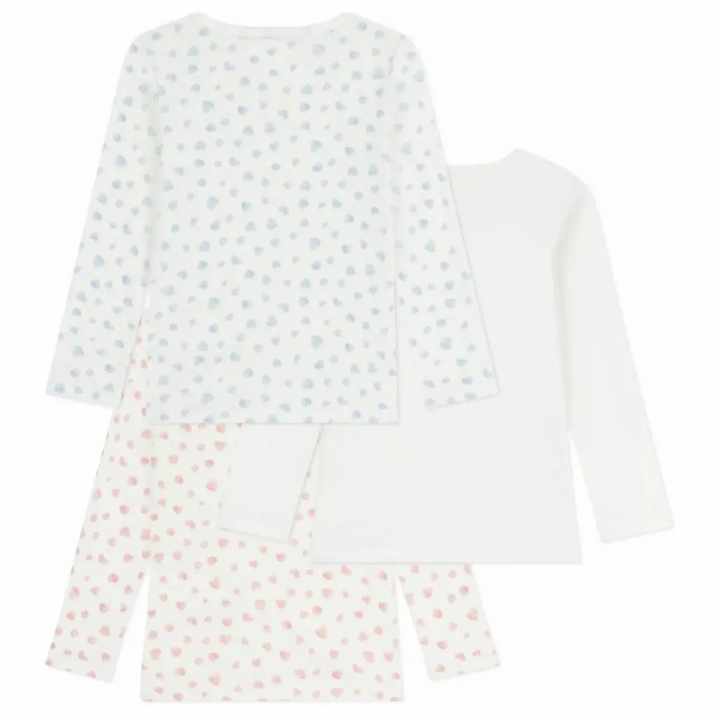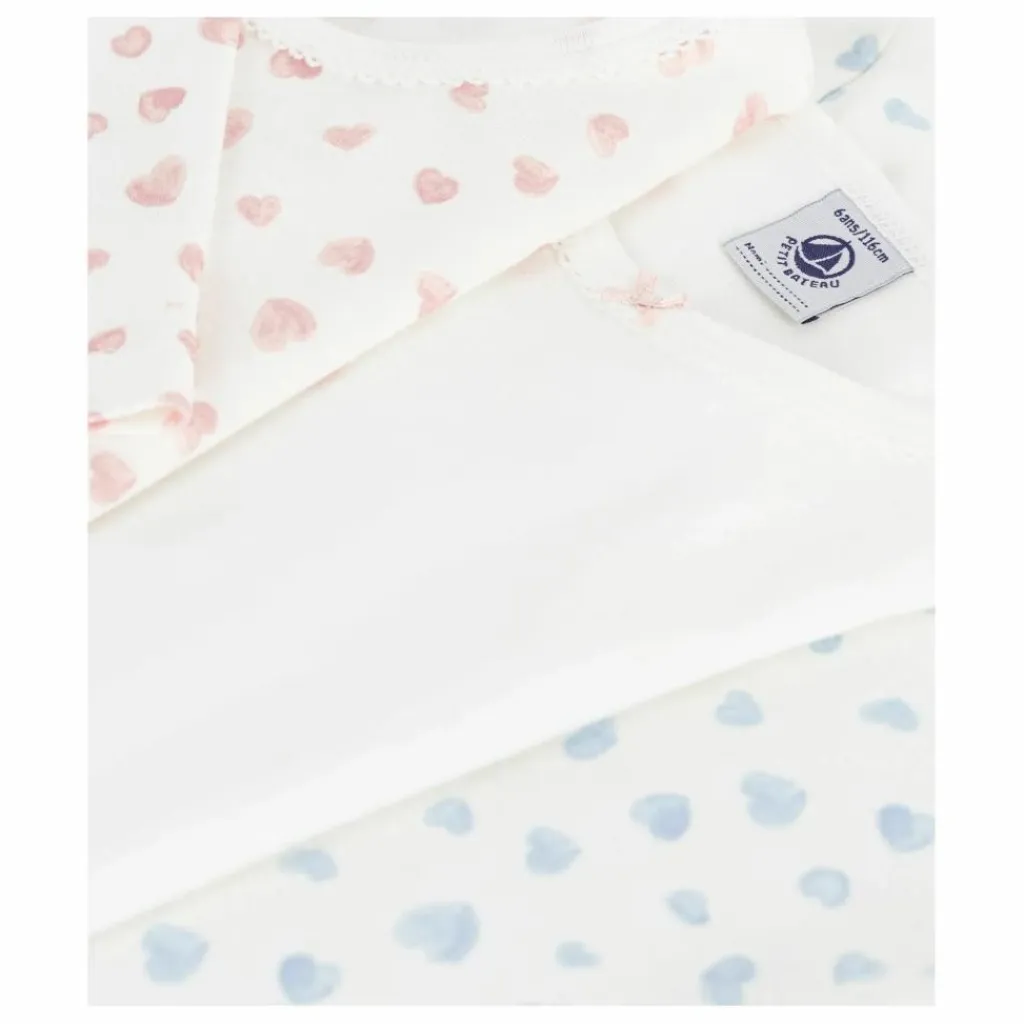 - Ce lot comprend un tee-shirt manches longues en côte 1×1 unie et deux tee-shirts manches longues à imprimé cœurs.