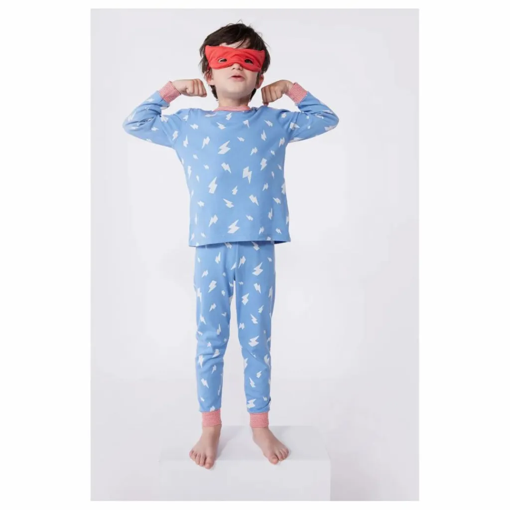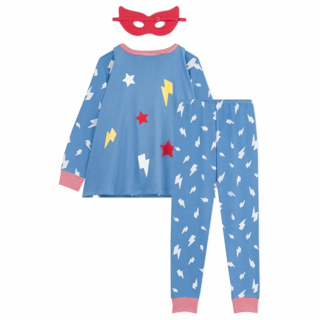 - Pyjama unisexe de super-héros/héroïne pour enfants en tricot côtelé 1X1, un tissu extensible et confortable. Pyjama déguisé, avec masque et cape pour rendre l’heure du coucher plus amusante ! Lorsqu’ils sont exposés à la lumière, les éclairs brillent dans l’obscurité, pour une nuit magique. Les enfants adorent les motifs amusants qui brillent dans l’obscurité. Encolure côtelée, poignets et chevilles côtelés en tricot côtelé 1×1 à rayures. La cape amovible s’attache au cou à l’aide de boutons-pression. Masque de super-héros/héroïne élastiqué avec anneau de réglage, pour convenir à tous les âges de 3 à 12 ans. Taille élastiquée.