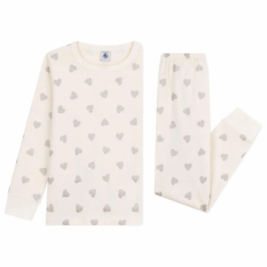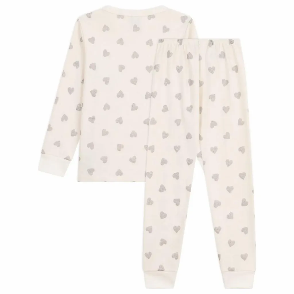 - Pyjama en côte 1×1 à imprimé cœurs à paillettes, pour briller jusque dans vos rêves !