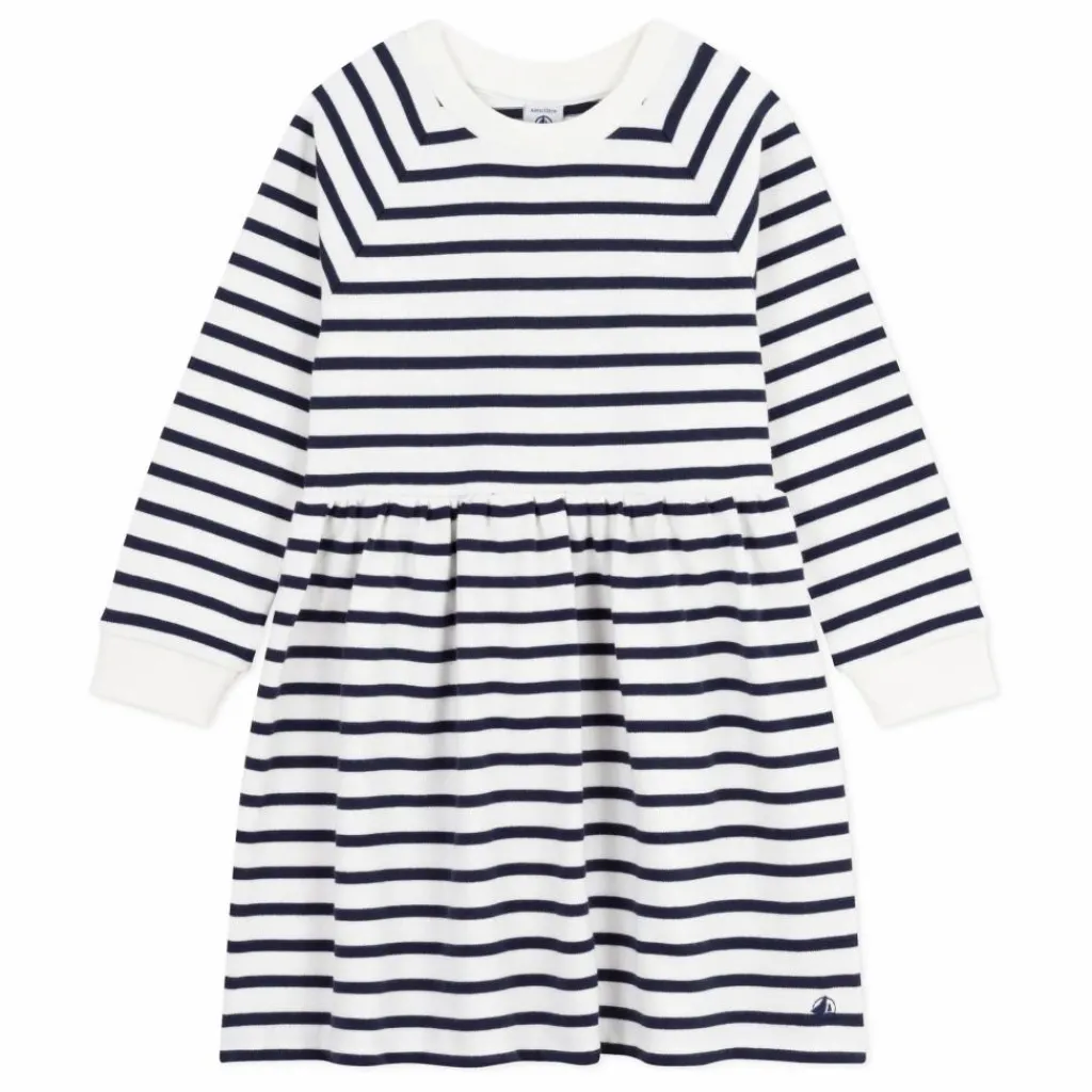 - Robe pour fille en coton épais rayé, un tissu confortable qui garde sa forme.Manches longues, design raglan._x005f_x000D_ _x005f_x000D_ Facile à enfiler.Coupe légèrement ample et fluide avec une taille froncée pour un look moderne.Longueur au-dessus du genou.