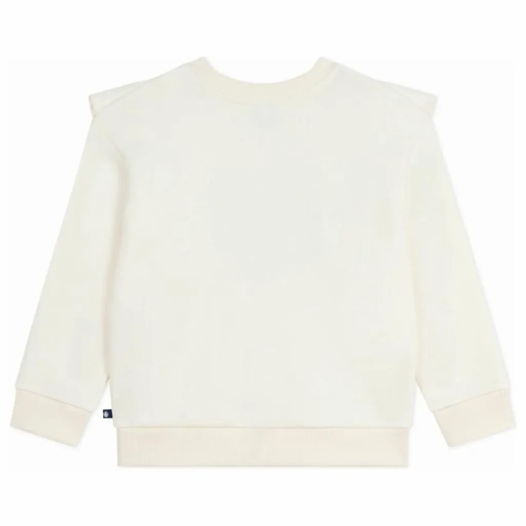 - Encolure arrondie. Volants froncés sur le devant, des épaules jusqu’en bas de corps. Bord-côte au col, en bas de manche et en bas de corps.