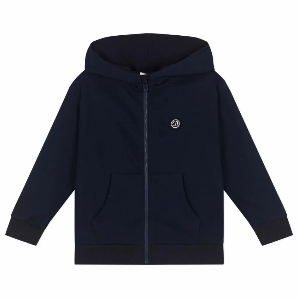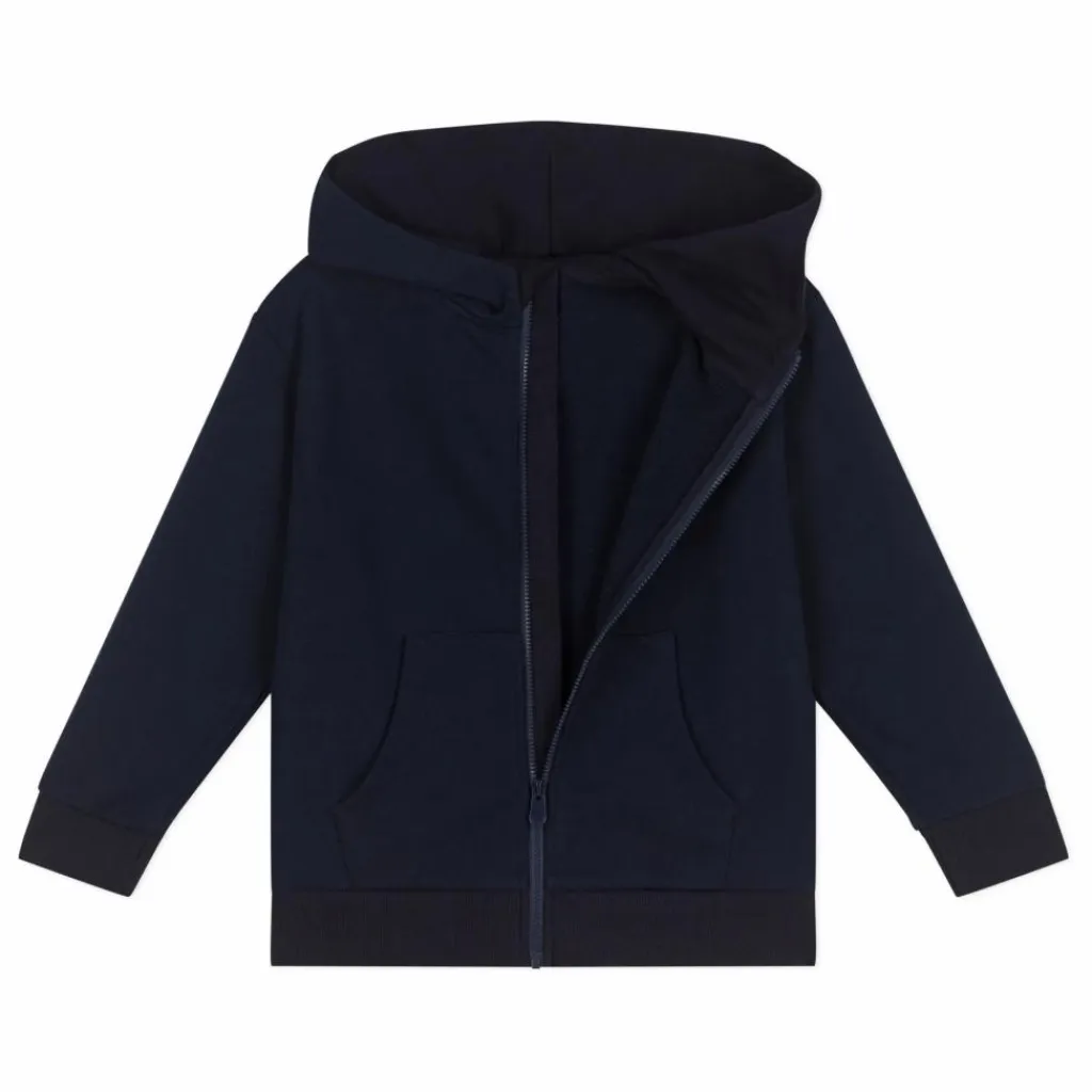 - Capuche et poche kangourou. Bord-côte en bas de manche et en bas de corps. Ouverture zippée sur le devant.