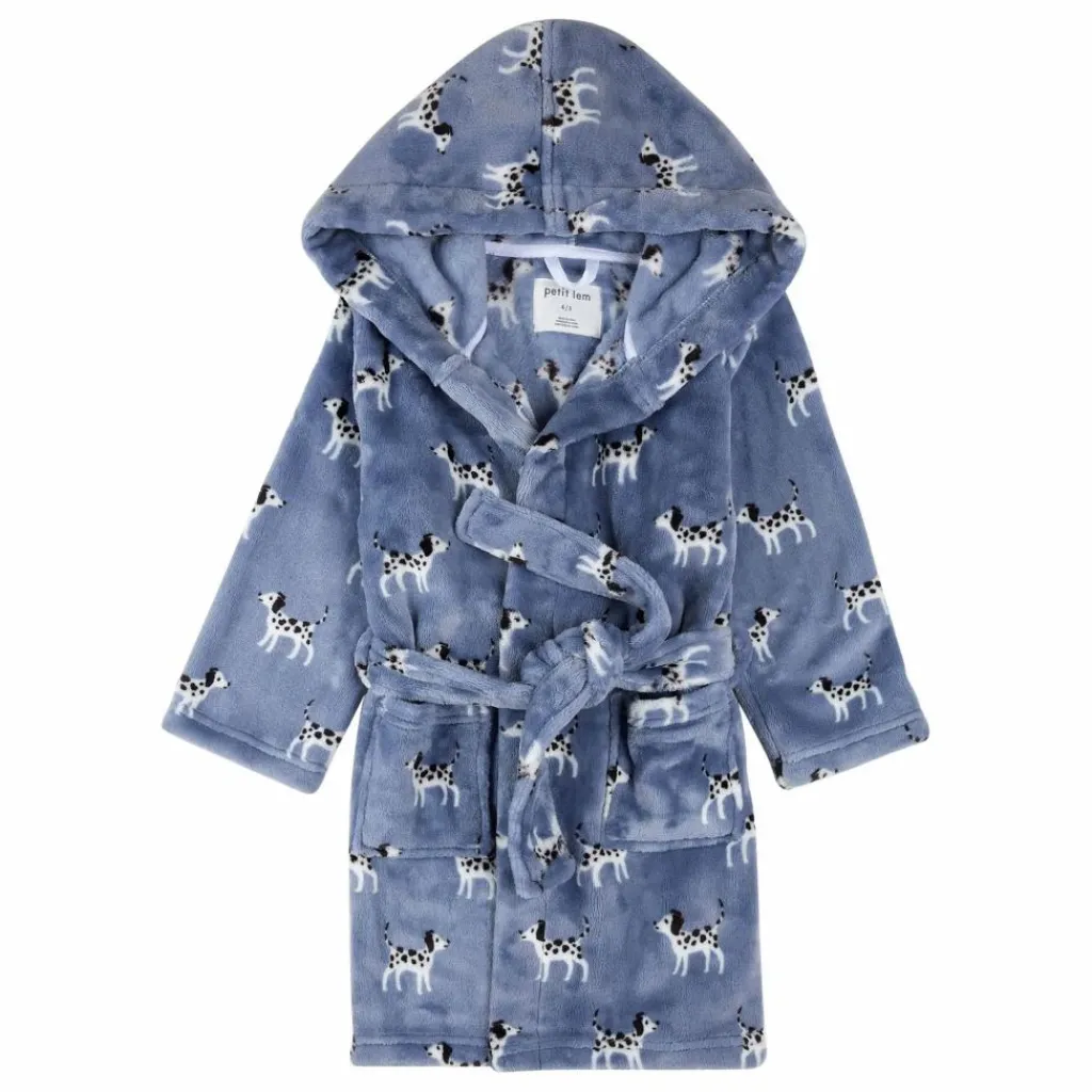 - Peignoir en peluche bleu royal à imprimé dalmatiens