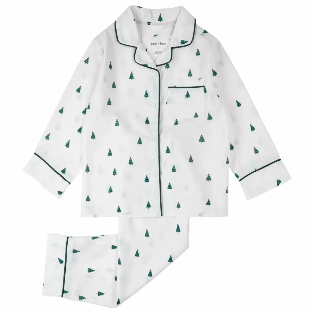 - Ensemble pyjama en popeline blanc cassé à imprimé sapins