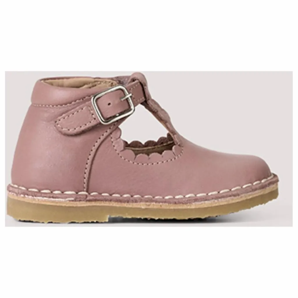 - T-Bar Scallop (taille normale à large) La T-bar a une taille parfaite grâce à sa hauteur confortable et à son support de cheville rembourré pour les petits marcheurs.