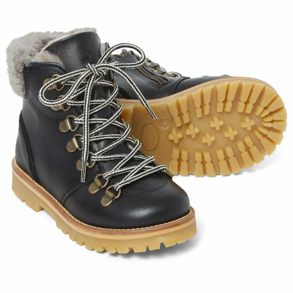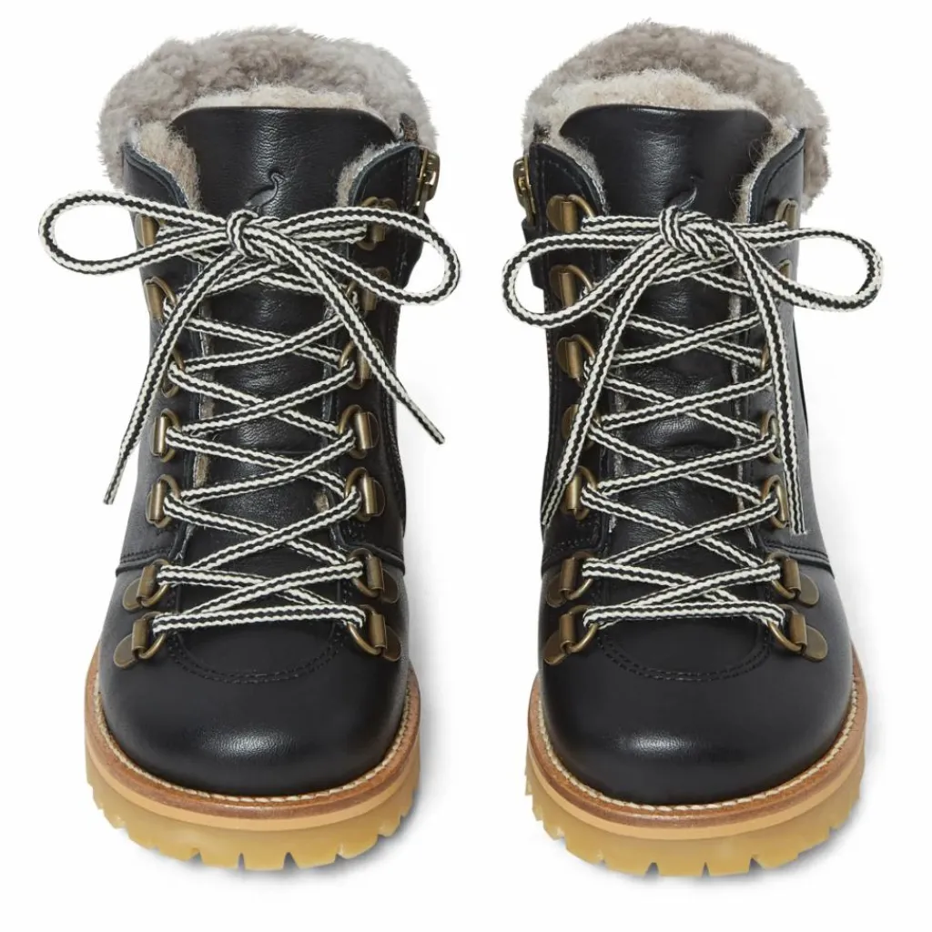 - Chaussures montantes, Rembourré, Empiècement cuir , Chaud, Logo embossé, Semelles antidérapantes, Semelles crantées, Surpiqûres contrastées, Bon maintien du pied