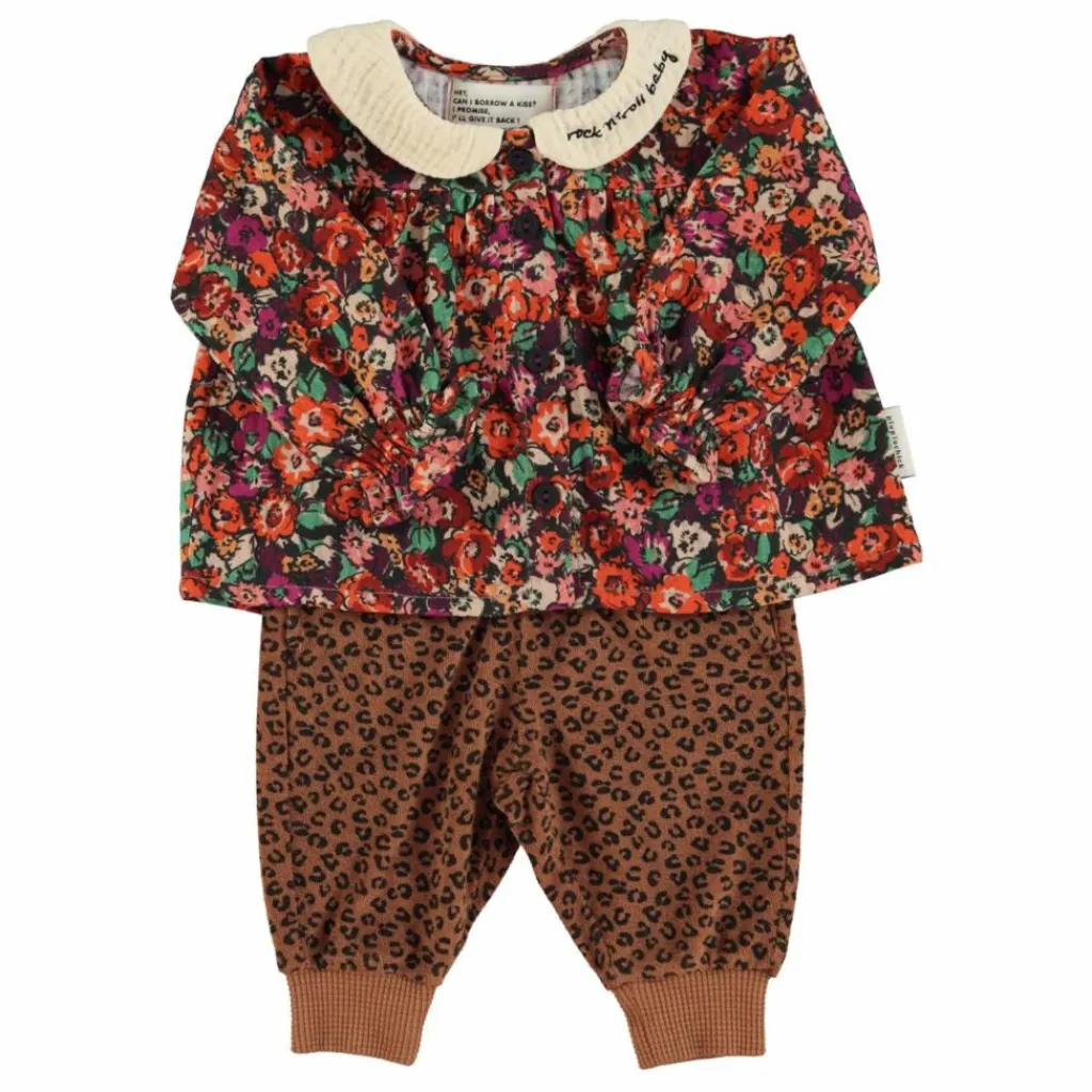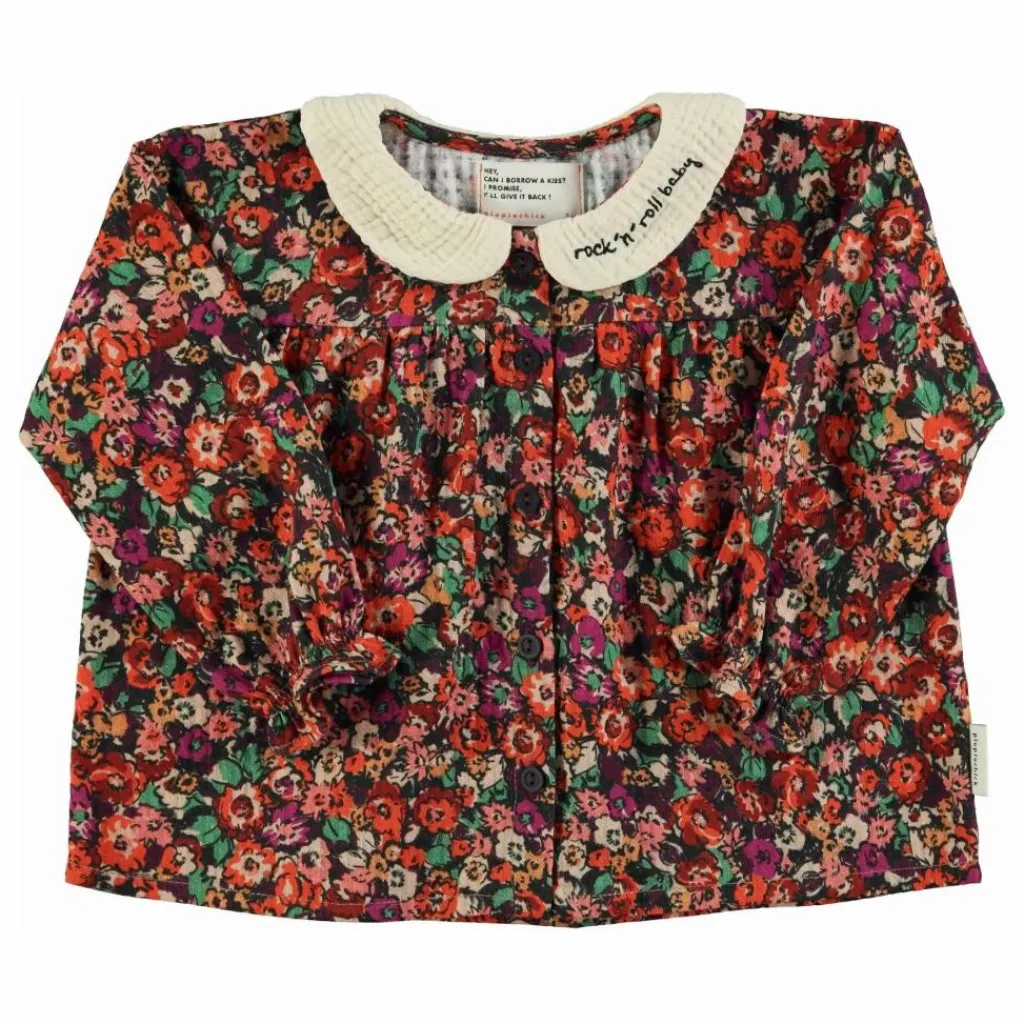 - Chemisier à col peter pan écru orné d’une broderie « rock’n’roll baby ». Boutons sur le devant. Poignets élastiqués.
