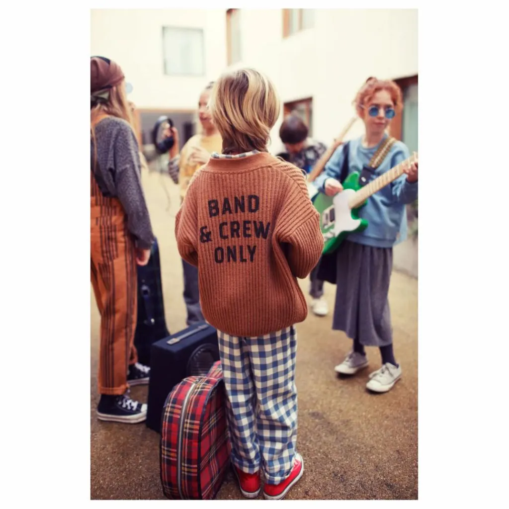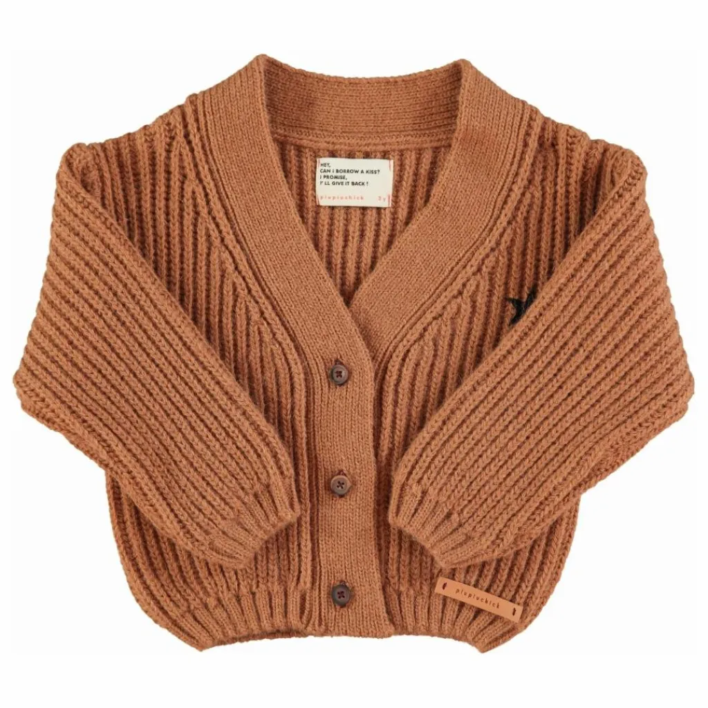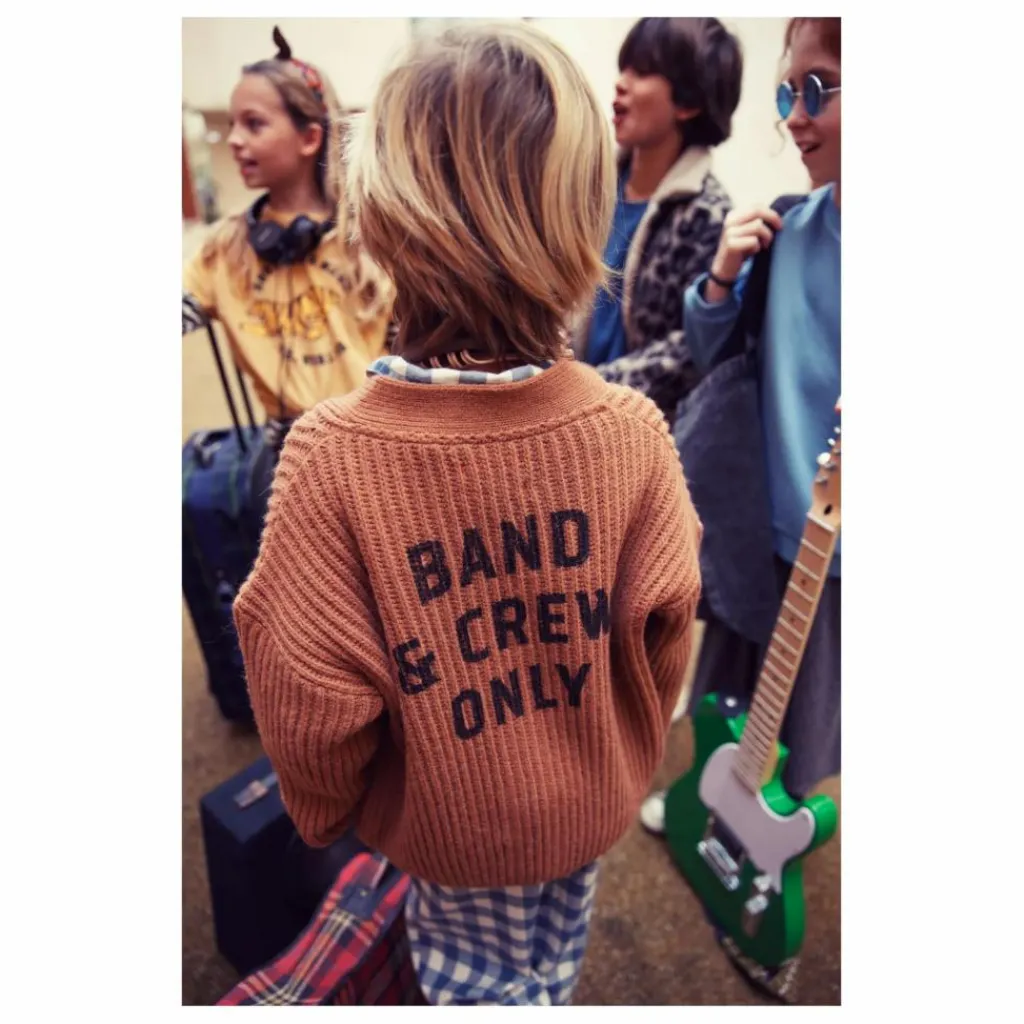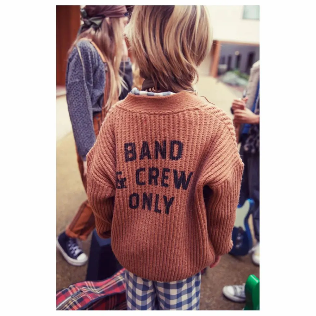 - Cardigan en maille avec col en V. Boutons sur le devant et étiquette logo en cuir. Petite étoile noire avec logo sur la poitrine et sur l’imprimé au dos.